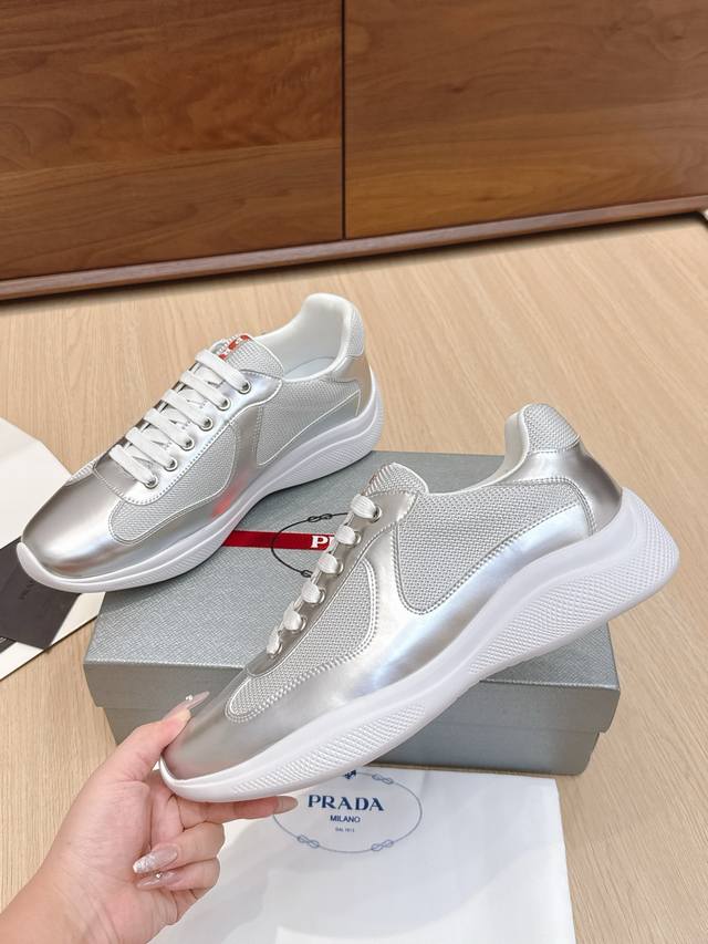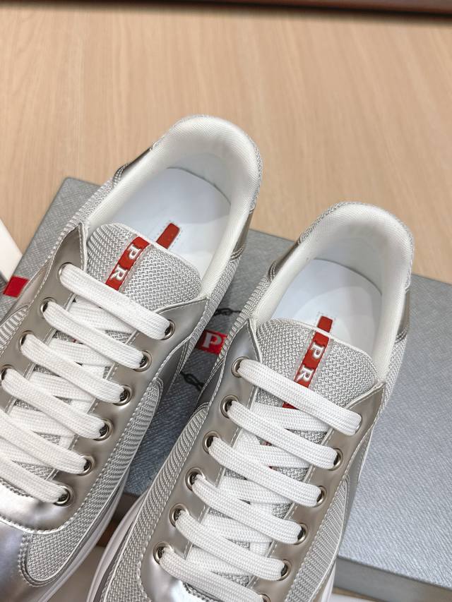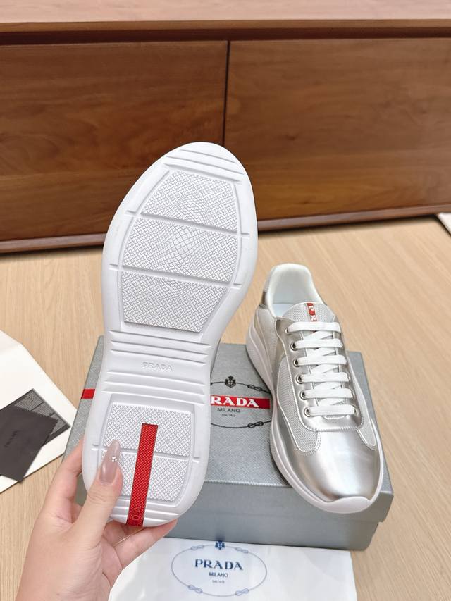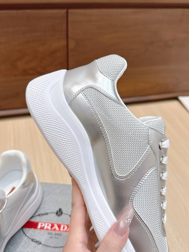 / 代购级 Prada普拉达America’S Cup系列 漆皮 网面 休闲 运动鞋 原版购入开发 做货 这款漆面皮革运动鞋内嵌Bike织物,灵感源自经典美学理念。