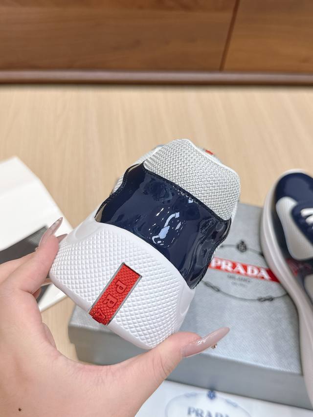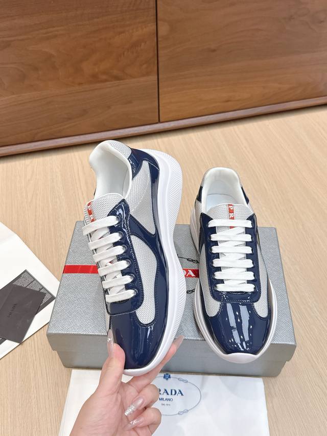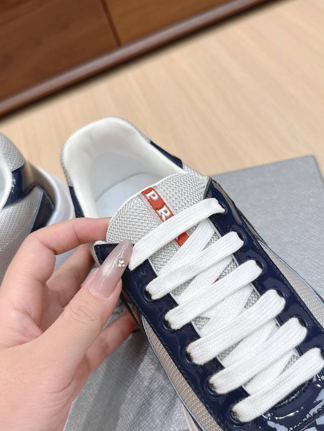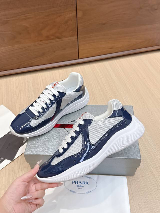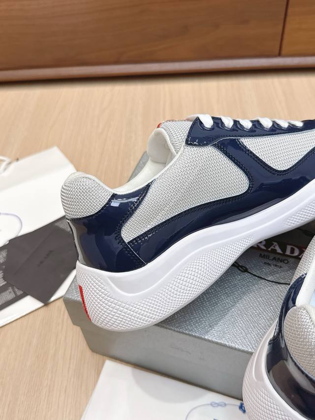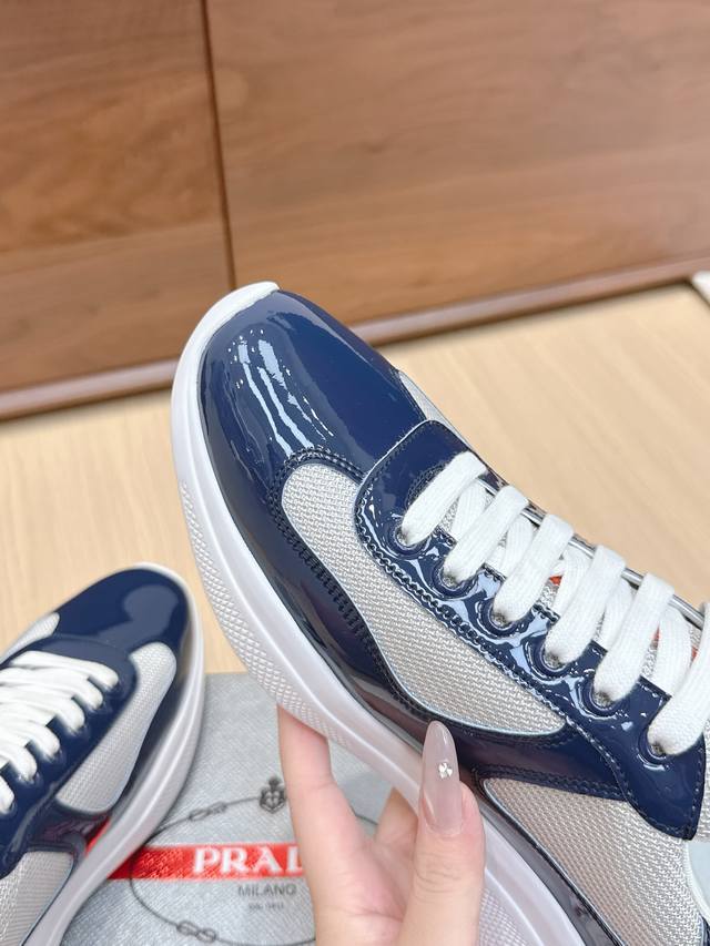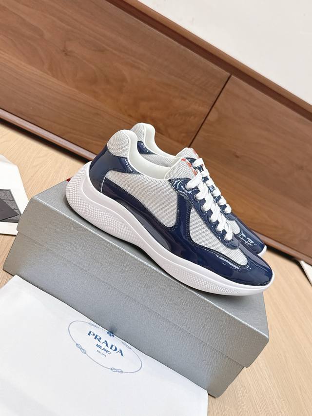 / 代购级 Prada普拉达America’S Cup系列 漆皮 网面 休闲 运动鞋 原版购入开发 做货 这款漆面皮革运动鞋内嵌Bike织物,灵感源自经典美学理念。