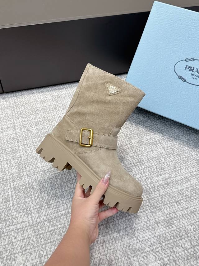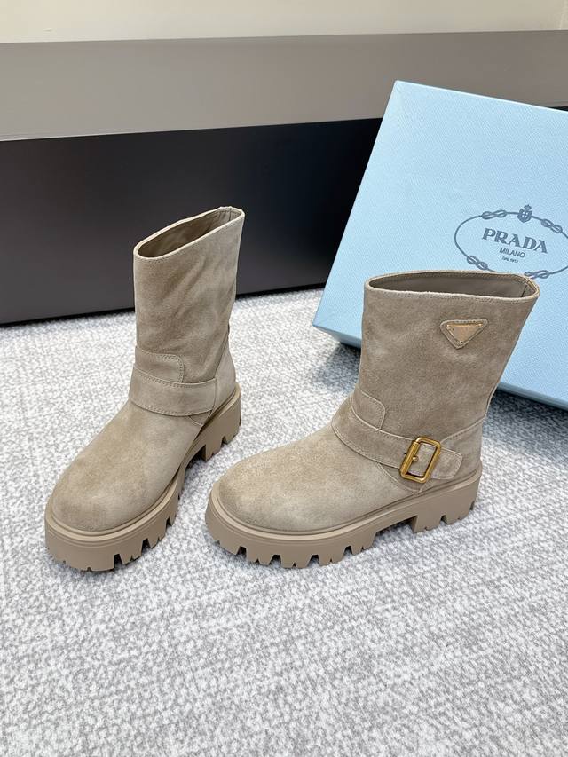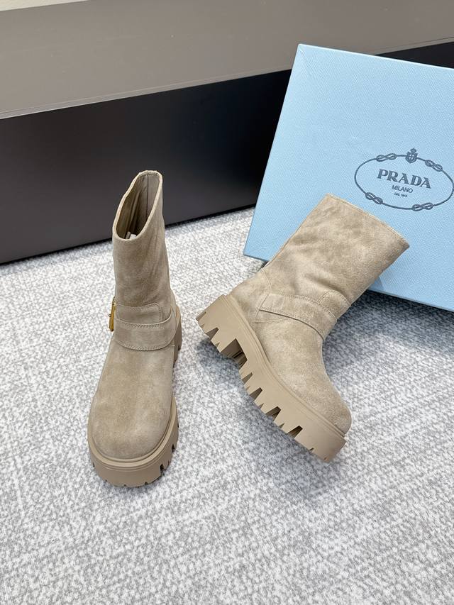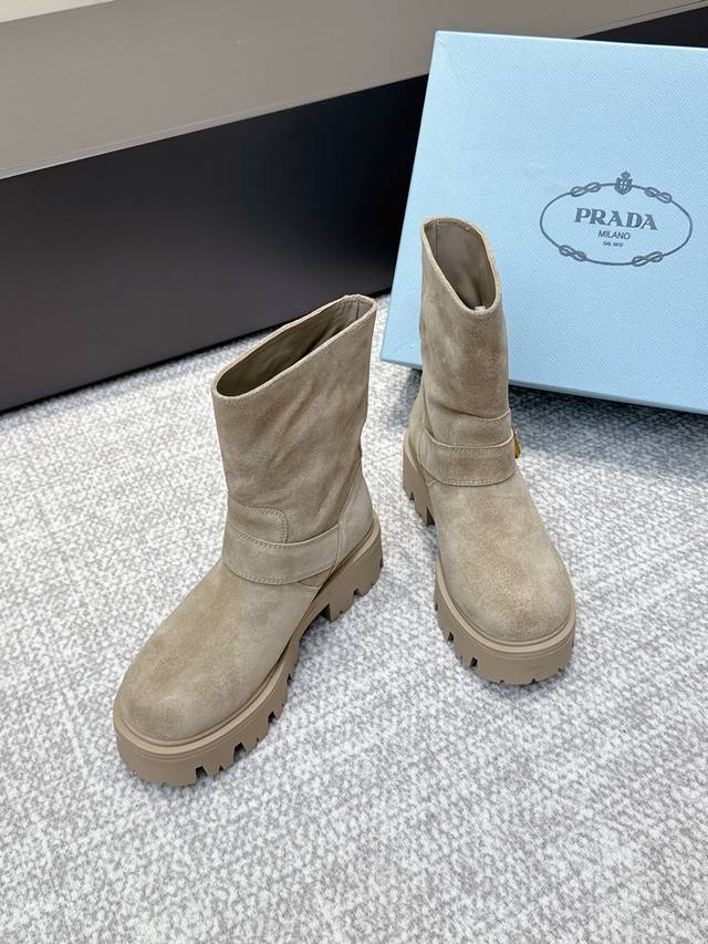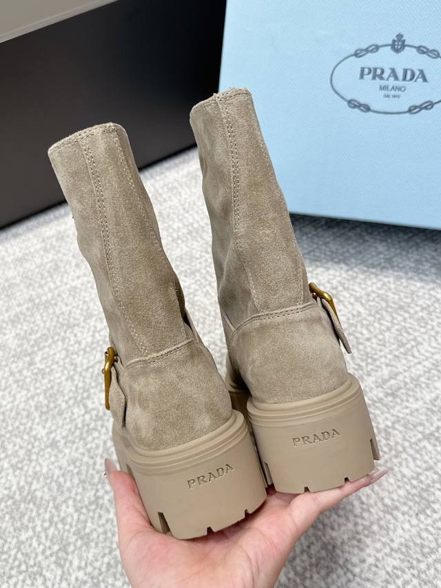 代购级 Prada 普拉达经典三角标一脚蹬王炸女靴 冬天买不到的系列,绝对是今年的大爆款!!贼好看!Prada靴子真的很哇塞!上脚大气显腿瘦气质这块刚好拿捏 全