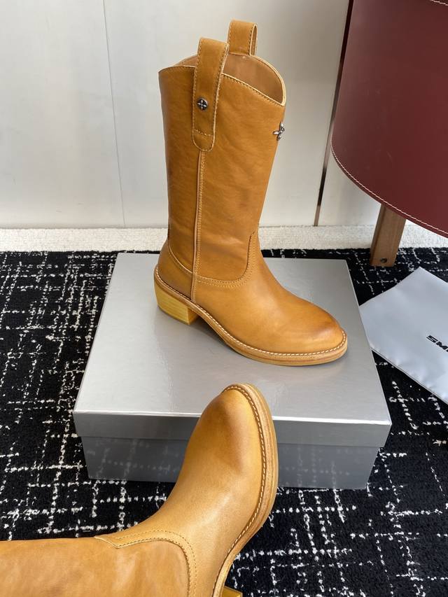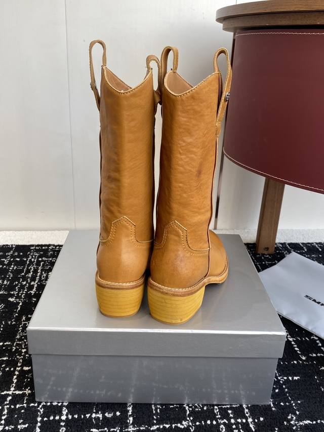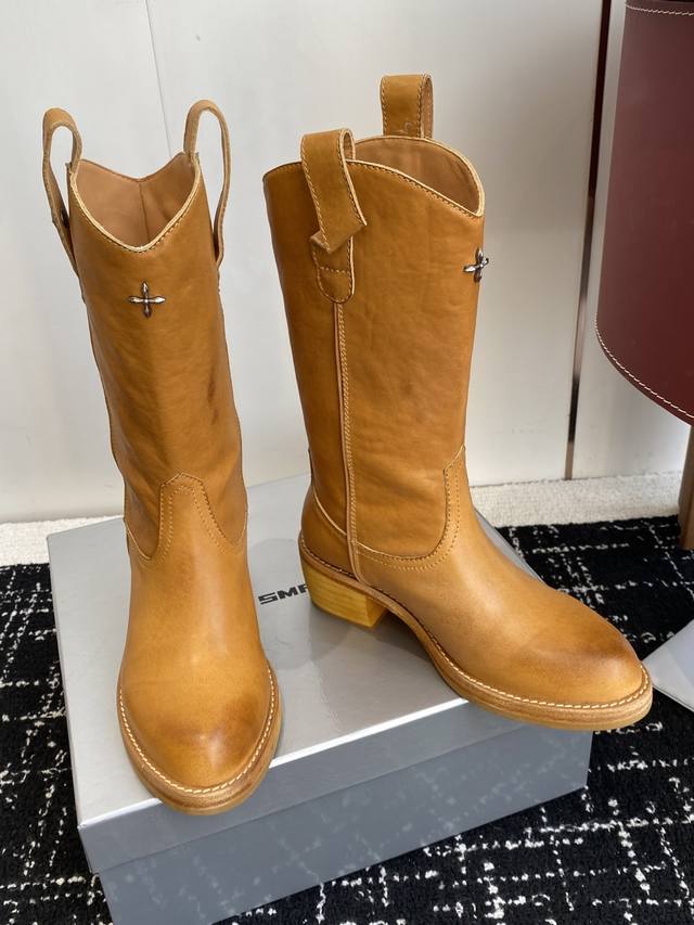 代购级 Smfk十字架新款 含金量谁懂 牛仔靴 短靴秋天里的一抹黄,其实它很帅升级版的 这双短靴是很有质感的油蜡黄色 配合马皮面料制作而成 大底使用固特异工艺进行固定缝合 主要是上脚穿真的显腿细,搭配秋冬深色外套卫衣特别出彩帅气 面料:进口做旧马皮 内里:牛皮 鞋底:原版开模 Size:35-40 40订做不退换