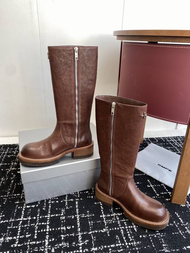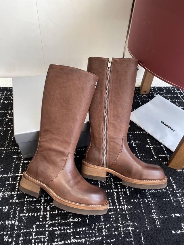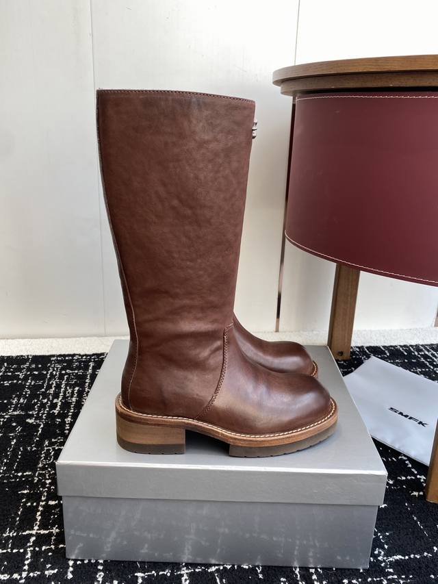 代购级 Smfk十字架新款 含金量谁懂 骑士靴秋天里的一抹黄,其实它很帅升级版的 这双长靴 是很有质感的油蜡黄色 配合马皮面料制作而成 大底使用固特异工艺进行固定缝合 主要是上脚穿真的显腿细,搭配秋冬深色外套卫衣特别出彩帅气 面料:进口做旧马皮 内里:牛皮 鞋底:原版开模 Size:35-40 40订做不退换