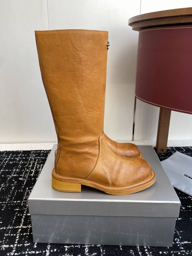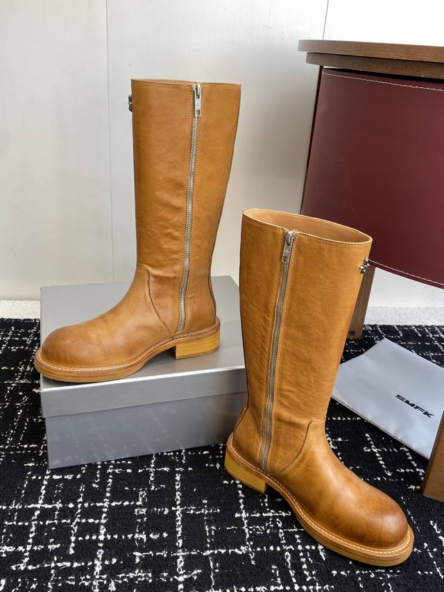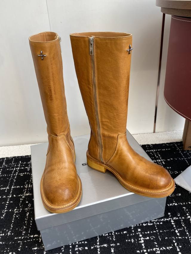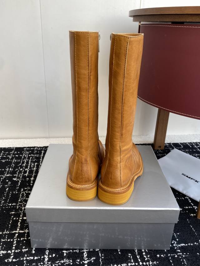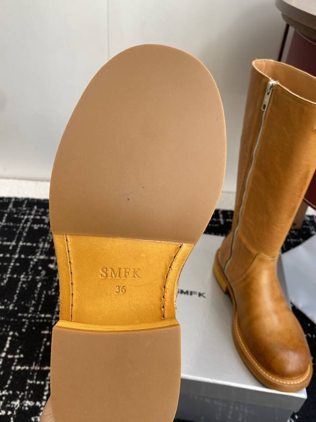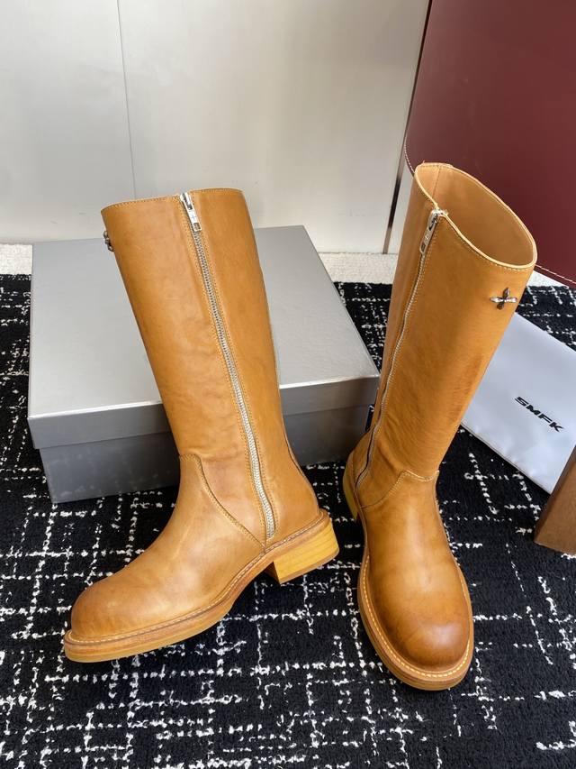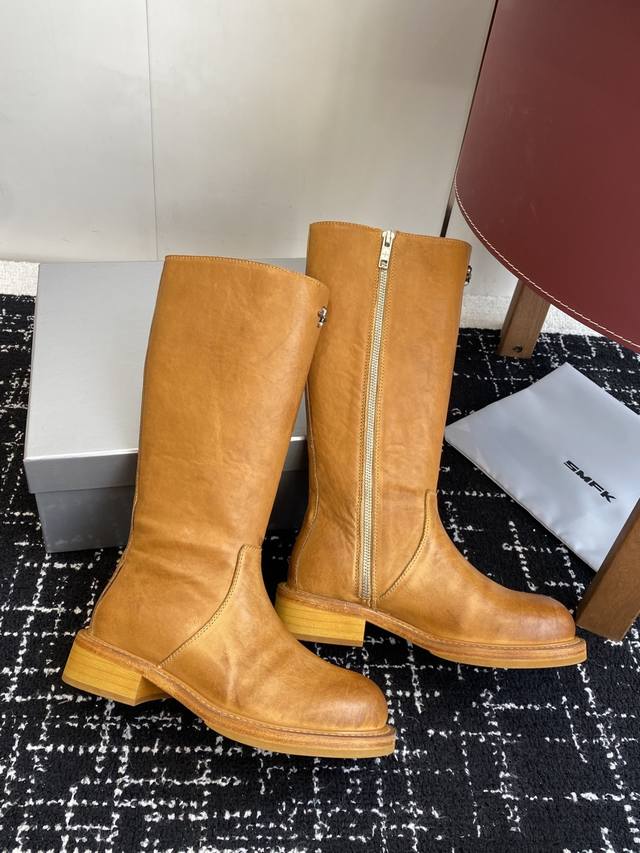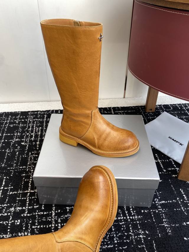 代购级 Smfk十字架新款 含金量谁懂 骑士靴秋天里的一抹黄,其实它很帅升级版的 这双长靴 是很有质感的油蜡黄色 配合马皮面料制作而成 大底使用固特异工艺进行固定缝合 主要是上脚穿真的显腿细,搭配秋冬深色外套卫衣特别出彩帅气 面料:进口做旧马皮 内里:牛皮 鞋底:原版开模 Size:35-40 40订做不退换