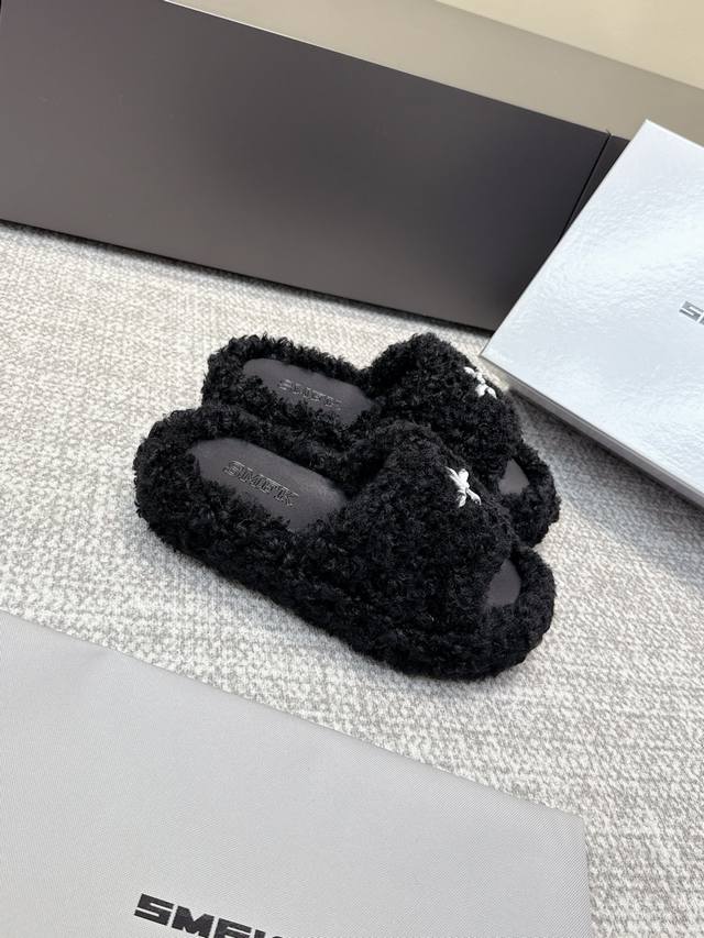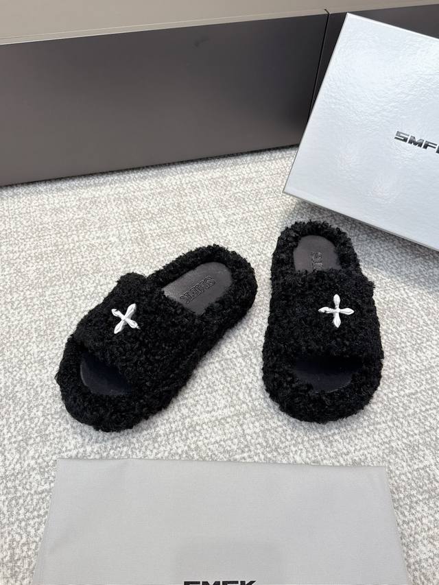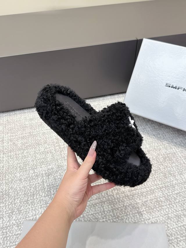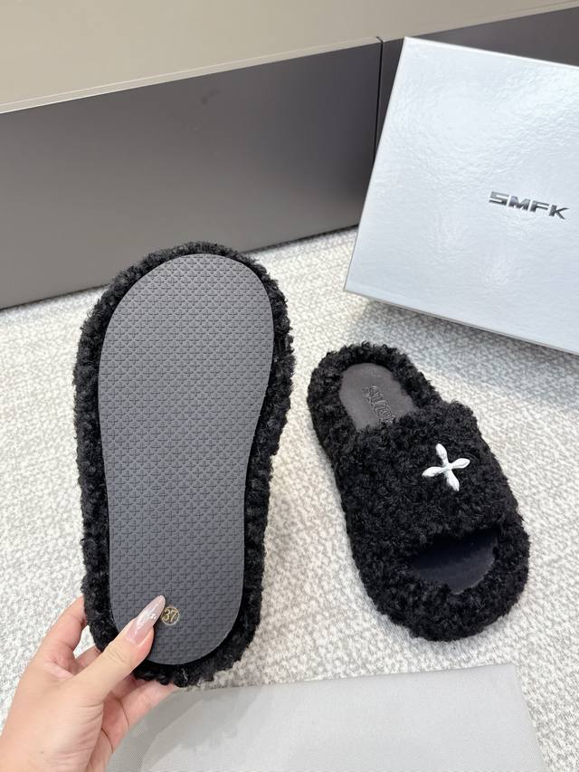 代购级 Smfk厚底面包拖鞋,超级火的一款面包拖,被种草得不行 各大网红博主都在穿它,巧妙纳入品牌元素后时尚百搭、辣妹至爱,被完美释放 面料:羊毛 内里 垫脚合