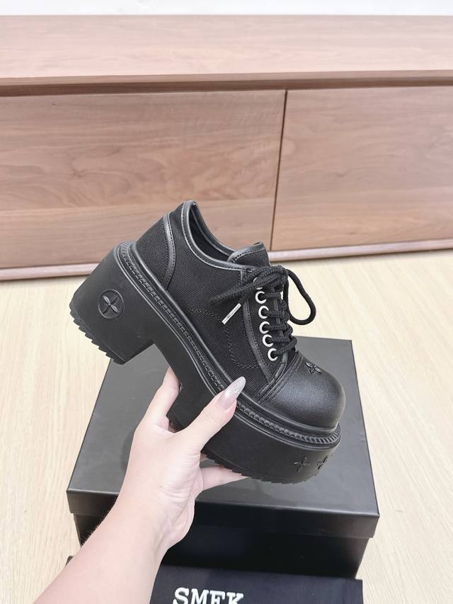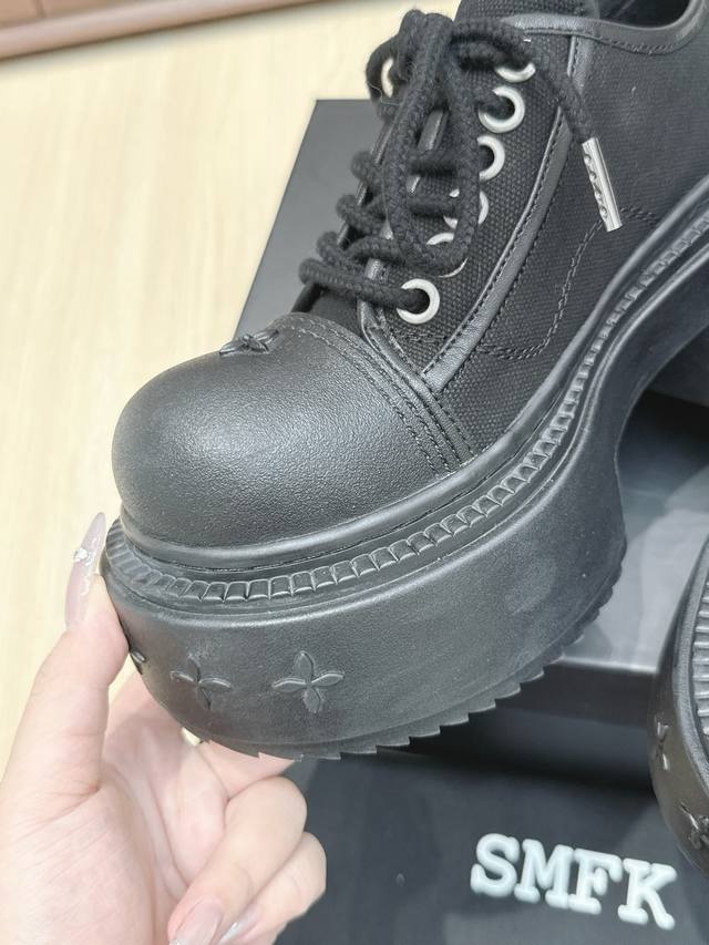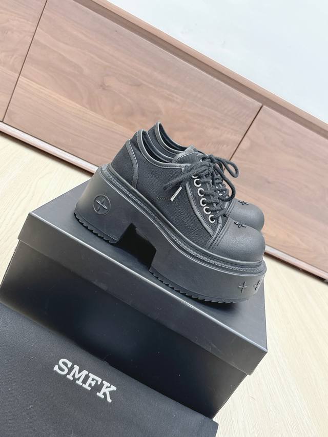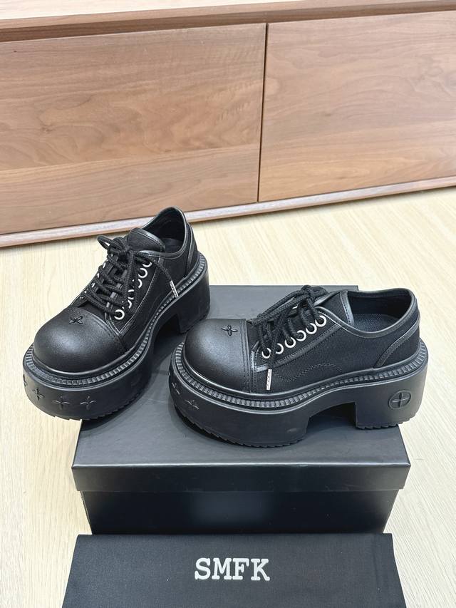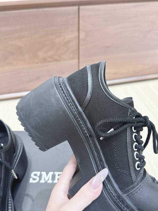 代购级 Smfk 最新系带厚底休闲鞋 极简随意搭配都很可 ,原版鞋头搭配五金Logo, 鞋面 进口牛皮 高丝光牛反绒 原版开模布料 内里透染羊皮,定制橡胶防滑大底 跟高6Cm Size:#35-40 40定做不退换