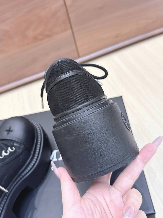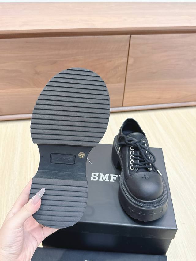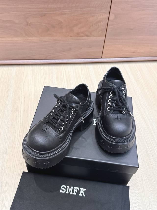 / 代购级 Smfk 最新系带厚底休闲鞋 极简随意搭配都很可 ,原版鞋头搭配五金Logo, 鞋面 进口牛皮 高丝光牛反绒 原版开模布料 内里透染羊皮,定制橡胶防滑大