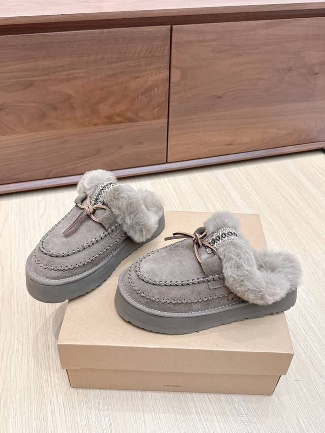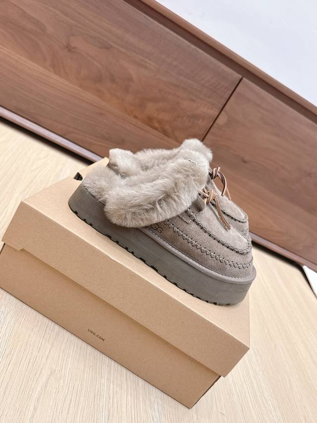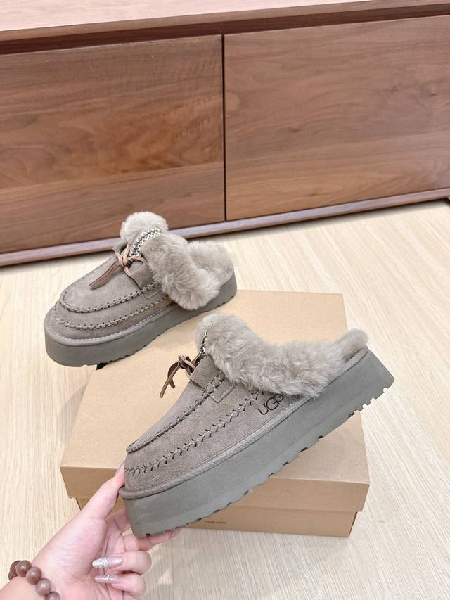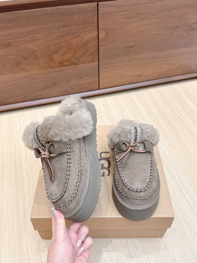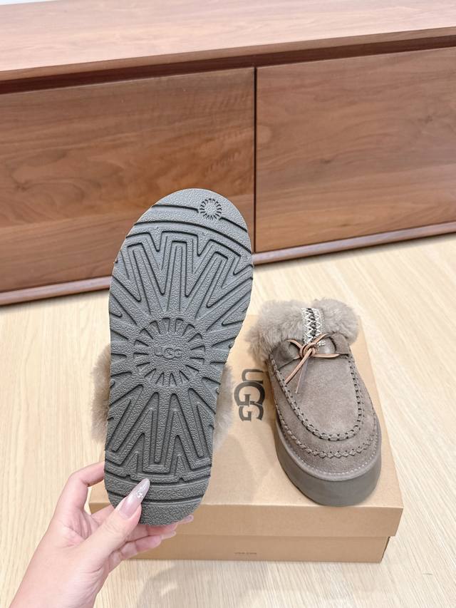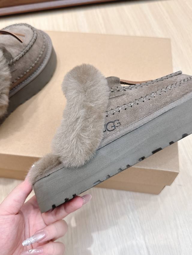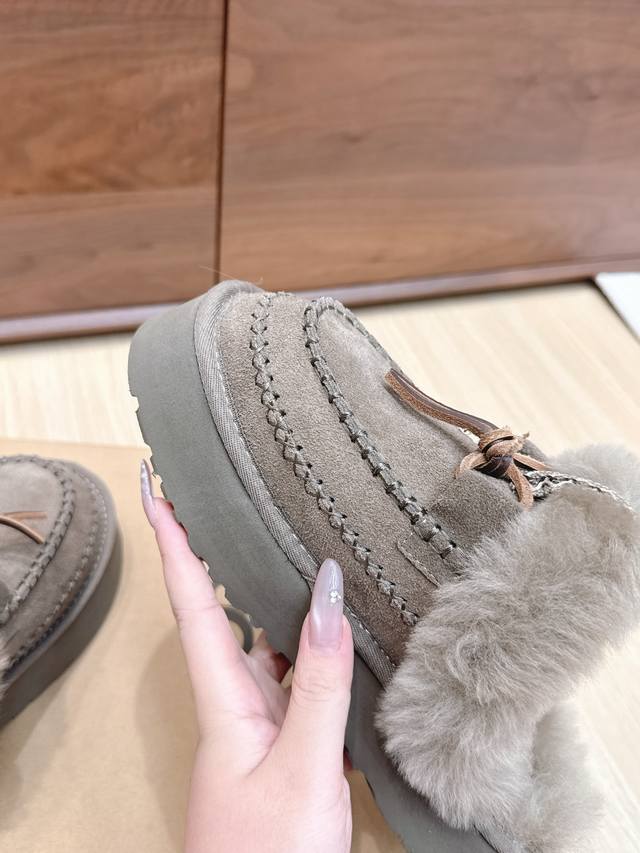 代购级 Ugg 2025Ss最新 雪地靴 半拖 年度最火Ugg厚底雪地靴剧透来了 忍不住要剧透一下,看到市场各种版本满天飞,独家定制对色开模的组合底马上就要出货了 这款Ugg厚底短款裸靴,正品并不是皮毛一体的,材料是牛绒贴合编织羊毛 顾名思义,基本市场所有Ugg都是用皮毛一体来做,因为那样直接做套包鞋容易出产量,而且成本比较低,做起来又快! 但是弊端是鞋子非常容易变形走样,如果天天穿没一周就严重变形 正品这款Ugg是用做时装鞋 的做法去做,牛绒贴合羊毛的材料拿来全套包,再蒙鞋,牵扯到很多工序,要加鞋头港宝
