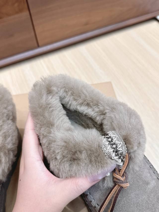 代购级 Ugg 2025Ss秋冬最新 雪地靴 年度最火Ugg厚底雪地靴剧透来了 忍不住要剧透一下,看到市场各种版本满天飞,独家定制对色开模的组合底马上就要出货了 这款Ugg厚底短款裸靴,正品并不是皮毛一体的,材料是牛绒贴合编织羊毛 顾名思义,基本市场所有Ugg都是用皮毛一体来做,因为那样直接做套包鞋容易出产量,而且成本比较低,做起来又快! 但是弊端是鞋子非常容易变形走样,如果天天穿没一周就严重变形 正品这款Ugg是用做时装鞋 的做法去做,牛绒贴合羊毛的材料拿来全套包,再蒙鞋,牵扯到很多工序,要加鞋头港宝,