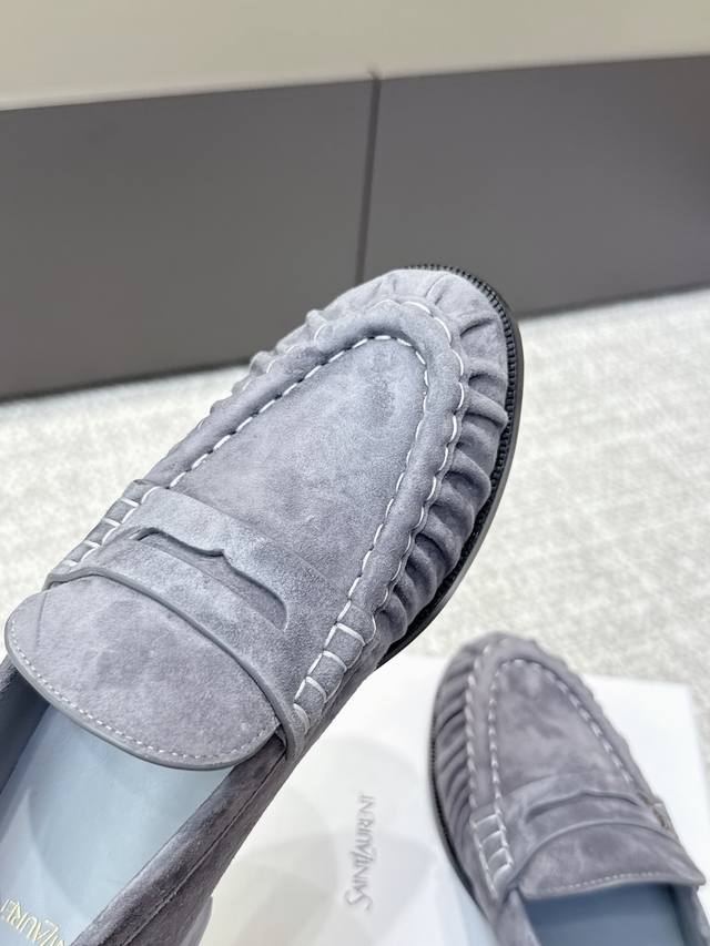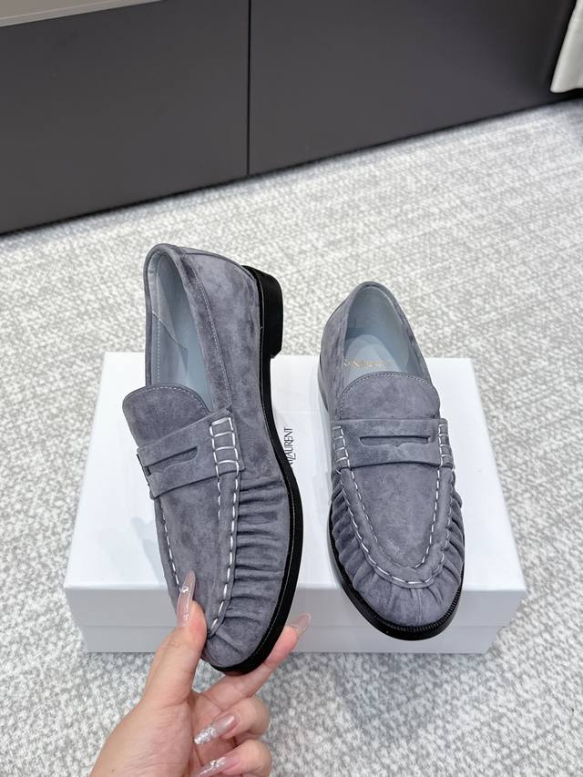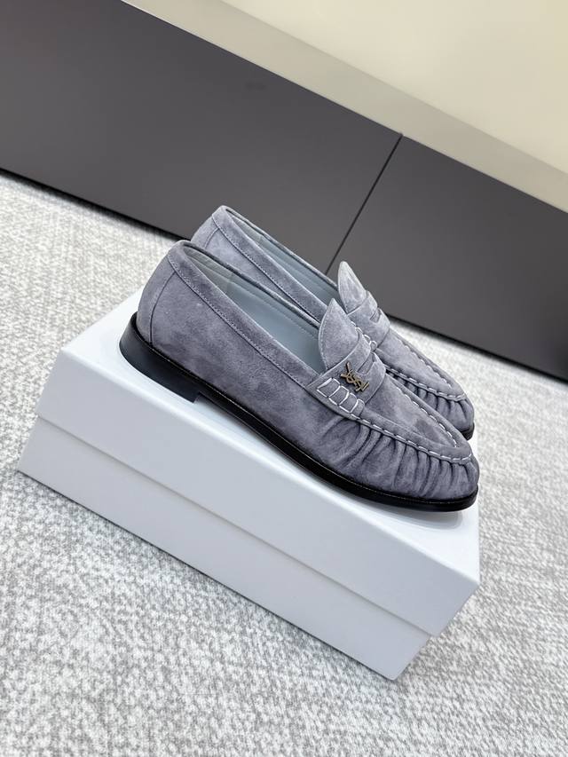 代购级 Yves Saint Laurent 25Ss新品Ysl小Logo乐福鞋 标志性的小Logo是这双鞋的灵魂所在 以低调而精致的姿态呈现于鞋身之上。 不同于张扬的大标识 它安静却醒目 用简洁线条勾勒出Ysl独有的时尚Dna 在不经意间透露出品牌的深厚底蕴 鞋头的经典杏仁形设计 巧妙修饰脚型 在视觉上拉长足部线条 彰显优雅与秀气 。 无论是搭配简约阔腿裤 还是俏皮小短裙 都能轻松驾驭 展现不同风格魅力 成为造型中的点睛之笔。 面料:采用原版定制皮料 内里:垫脚均为羊皮 鞋底:意大利进口真皮大底 Siz