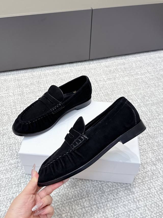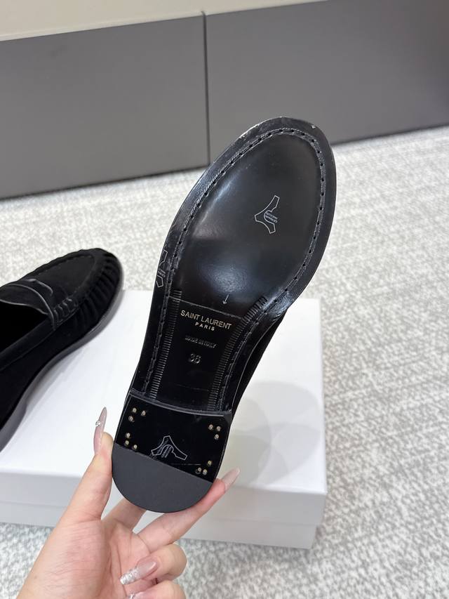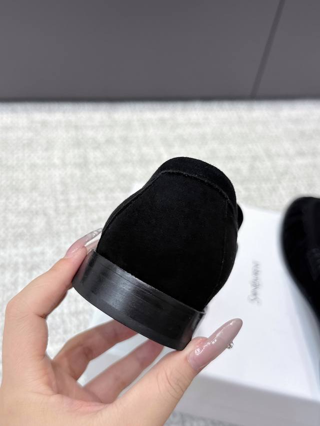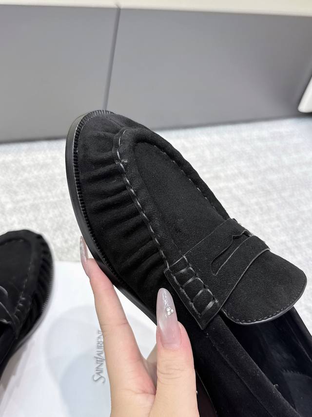 代购级 Yves Saint Laurent 25Ss新品Ysl小Logo乐福鞋 标志性的小Logo是这双鞋的灵魂所在 以低调而精致的姿态呈现于鞋身之上。 不同于张扬的大标识 它安静却醒目 用简洁线条勾勒出Ysl独有的时尚Dna 在不经意间透露出品牌的深厚底蕴 鞋头的经典杏仁形设计 巧妙修饰脚型 在视觉上拉长足部线条 彰显优雅与秀气 。 无论是搭配简约阔腿裤 还是俏皮小短裙 都能轻松驾驭 展现不同风格魅力 成为造型中的点睛之笔。 面料:采用原版定制皮料 内里:垫脚均为羊皮 鞋底:意大利进口真皮大底 Siz