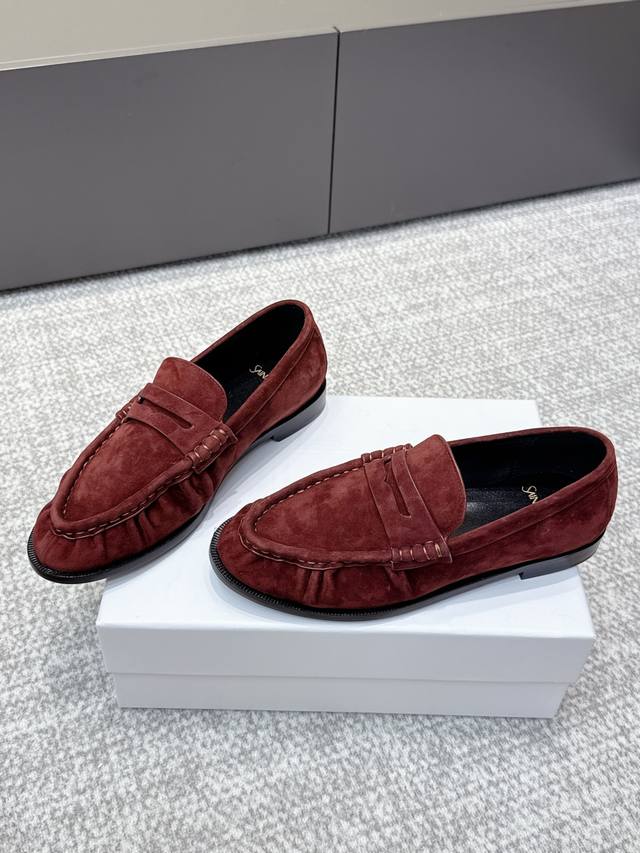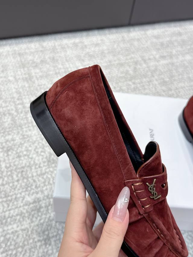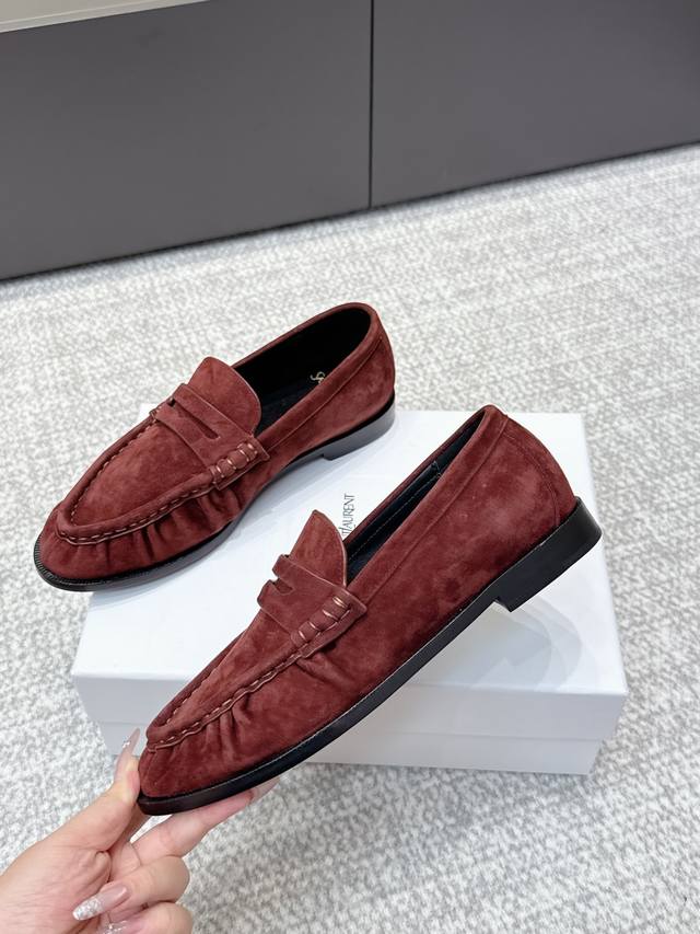 代购级 Yves Saint Laurent 25Ss新品Ysl小Logo乐福鞋 标志性的小Logo是这双鞋的灵魂所在 以低调而精致的姿态呈现于鞋身之上。 不同于张扬的大标识 它安静却醒目 用简洁线条勾勒出Ysl独有的时尚Dna 在不经意间透露出品牌的深厚底蕴 鞋头的经典杏仁形设计 巧妙修饰脚型 在视觉上拉长足部线条 彰显优雅与秀气 。 无论是搭配简约阔腿裤 还是俏皮小短裙 都能轻松驾驭 展现不同风格魅力 成为造型中的点睛之笔。 面料:采用原版定制皮料 内里:垫脚均为羊皮 鞋底:意大利进口真皮大底 Siz