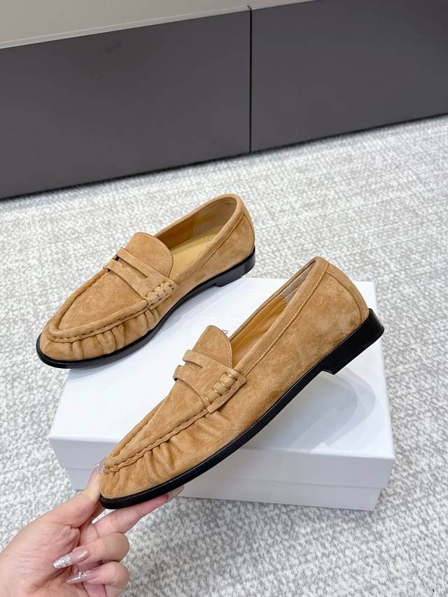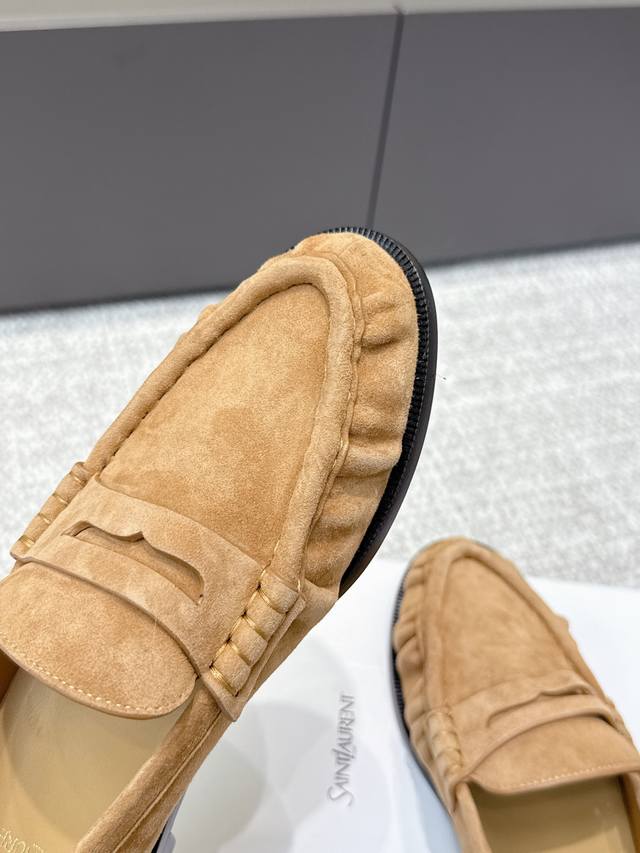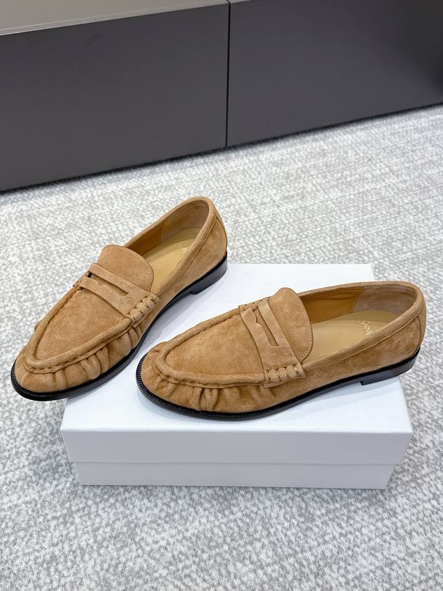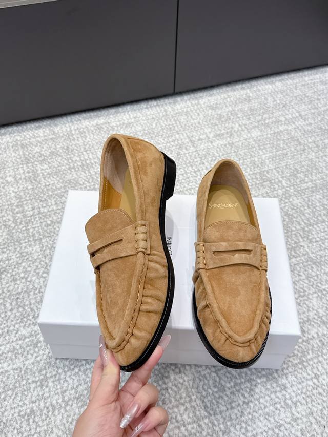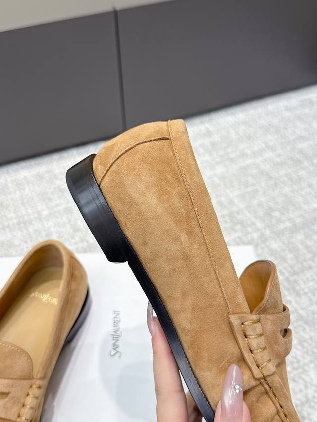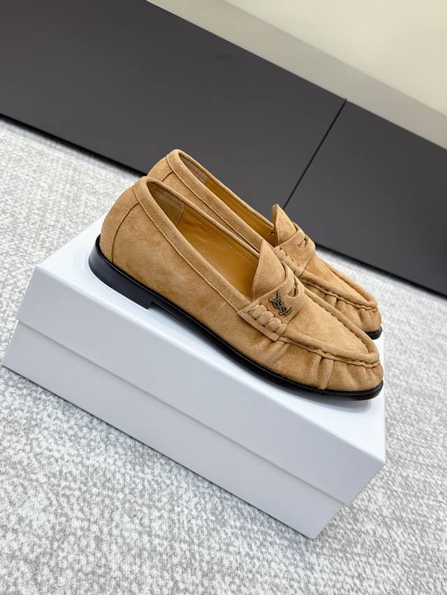 代购级 Yves Saint Laurent 25Ss新品Ysl小Logo乐福鞋 标志性的小Logo是这双鞋的灵魂所在 以低调而精致的姿态呈现于鞋身之上。 不同于张扬的大标识 它安静却醒目 用简洁线条勾勒出Ysl独有的时尚Dna 在不经意间透露出品牌的深厚底蕴 鞋头的经典杏仁形设计 巧妙修饰脚型 在视觉上拉长足部线条 彰显优雅与秀气 。 无论是搭配简约阔腿裤 还是俏皮小短裙 都能轻松驾驭 展现不同风格魅力 成为造型中的点睛之笔。 面料:采用原版定制皮料 内里:垫脚均为羊皮 鞋底:意大利进口真皮大底 Siz