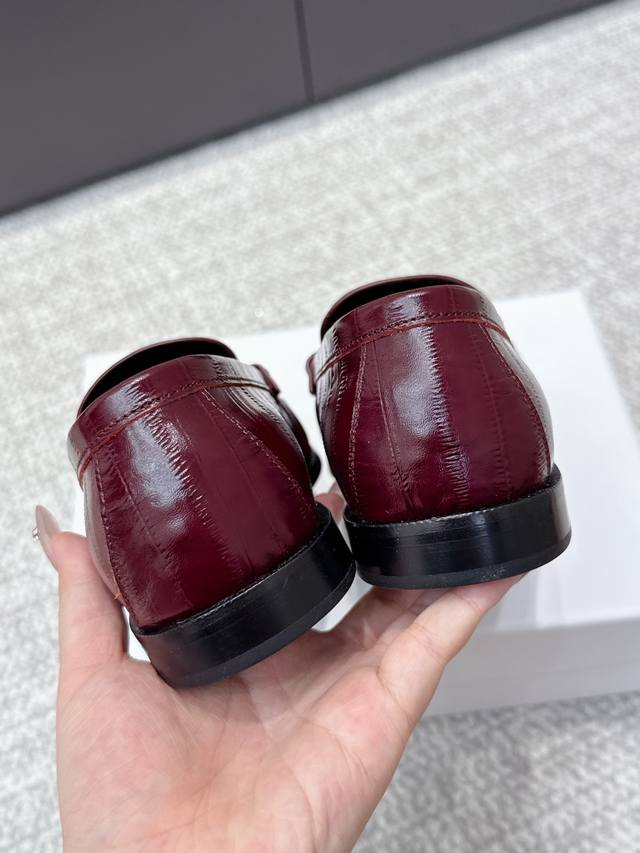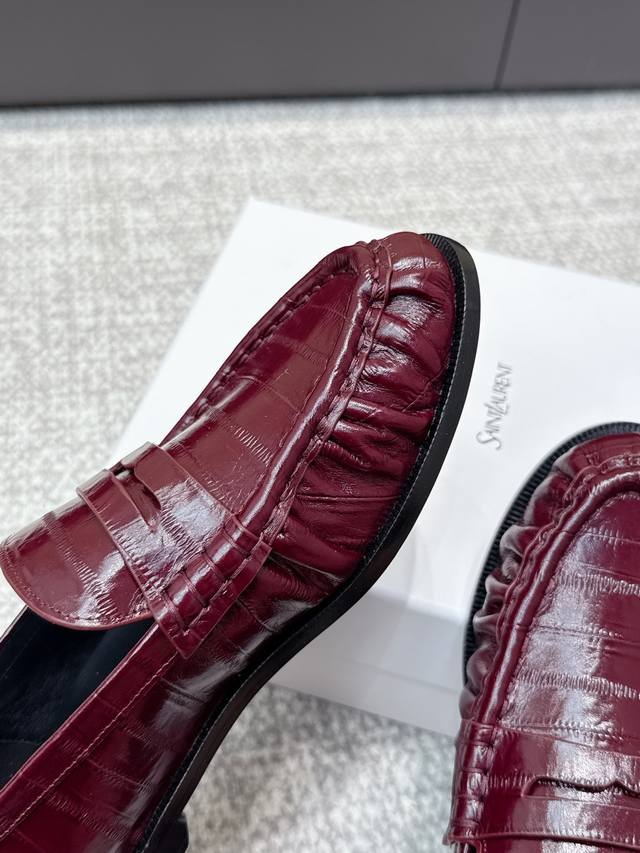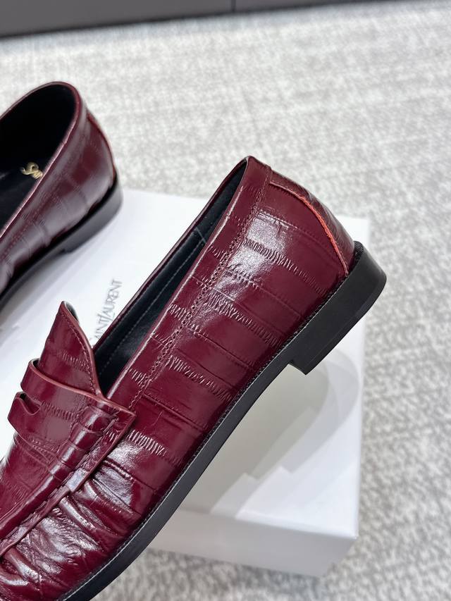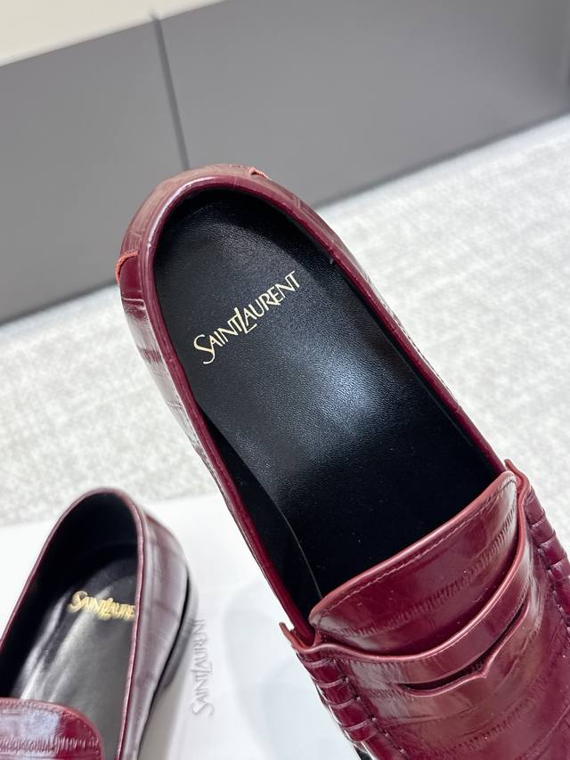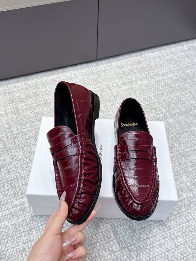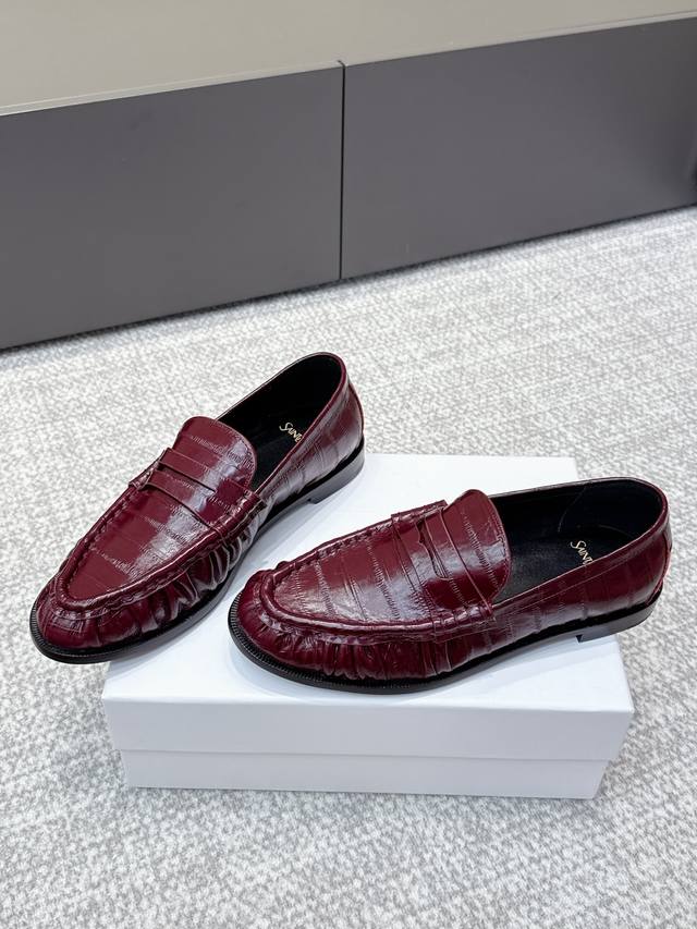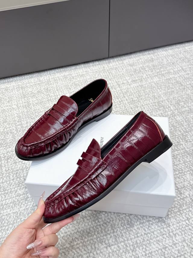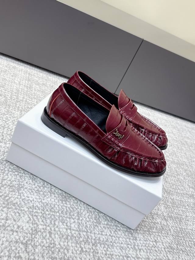 代购级 Yves Saint Laurent 25Ss新品Ysl小Logo乐福鞋 标志性的小Logo是这双鞋的灵魂所在 以低调而精致的姿态呈现于鞋身之上。 不同于张扬的大标识 它安静却醒目 用简洁线条勾勒出Ysl独有的时尚Dna 在不经意间透露出品牌的深厚底蕴 鞋头的经典杏仁形设计 巧妙修饰脚型 在视觉上拉长足部线条 彰显优雅与秀气 。 无论是搭配简约阔腿裤 还是俏皮小短裙 都能轻松驾驭 展现不同风格魅力 成为造型中的点睛之笔。 面料:采用原版定制皮料 内里:垫脚均为羊皮 鞋底:意大利进口真皮大底 Siz