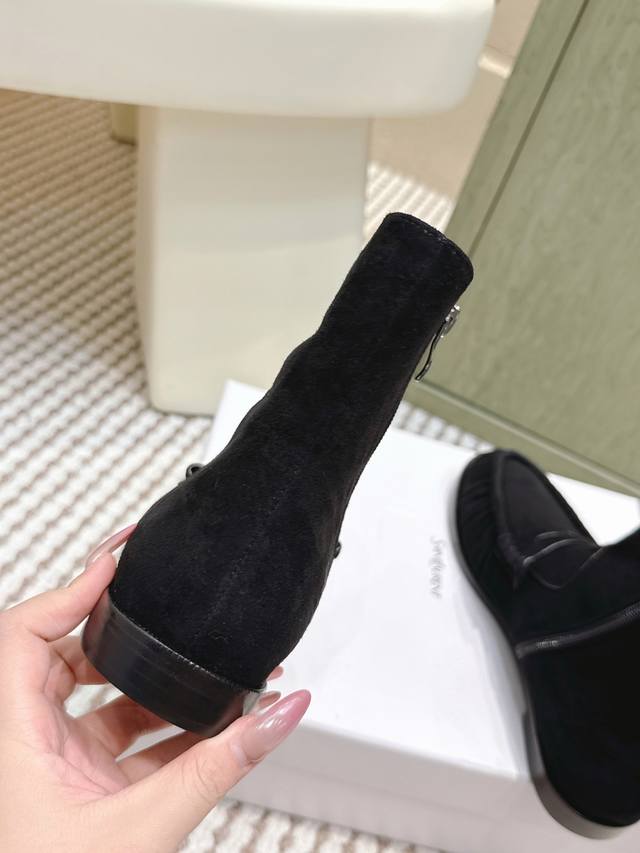 代购级 Yves Saint Laurent 25Ss新品Ysl小Logo高邦乐福鞋 标志性的小Logo是这双鞋的灵魂所在 以低调而精致的姿态呈现于鞋身之上。 不同于张扬的大标识 它安静却醒目 用简洁线条勾勒出Ysl独有的时尚Dna 在不经意间透露出品牌的深厚底蕴 鞋头的经典杏仁形设计 巧妙修饰脚型 在视觉上拉长足部线条 彰显优雅与秀气 。 无论是搭配简约阔腿裤 还是俏皮小短裙 都能轻松驾驭 展现不同风格魅力 成为造型中的点睛之笔。 面料:采用原版定制皮料 内里:垫脚均为羊皮 鞋底:意大利进口真皮大底 S