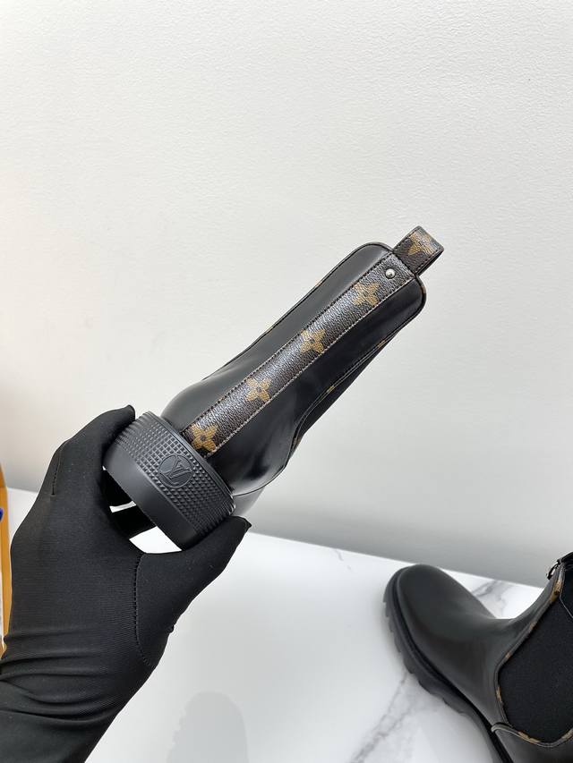 代购级Lv路易威登 L家驴牌District Ranger系列2025秋冬新款切尔西短靴 原版购入开发 做货 本款 District Ranger 及踝靴承载军旅灵感和路易威登的旅行传承,为舒软牛皮革鞋面点缀金属链条和 Monogram 帆布制成的行李牌形状挂饰。Eva 外底拥有细致凸纹,厚实而不失轻盈 面料: 头层小牛皮 内里:混种羊皮内里 大底: 原版开模发泡橡胶材质 底厚: 3.5Cm Size: 35-40 40定制