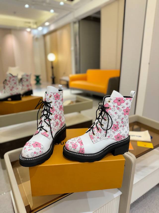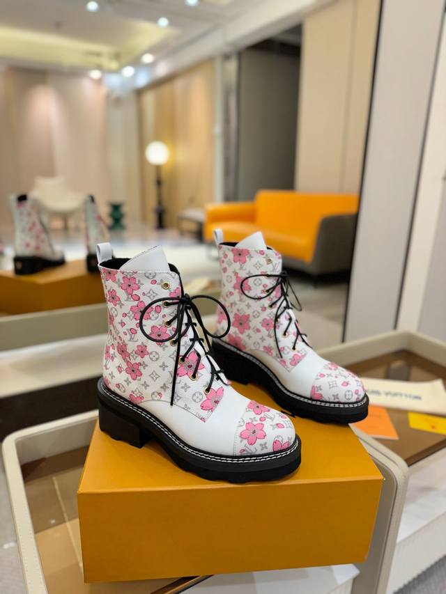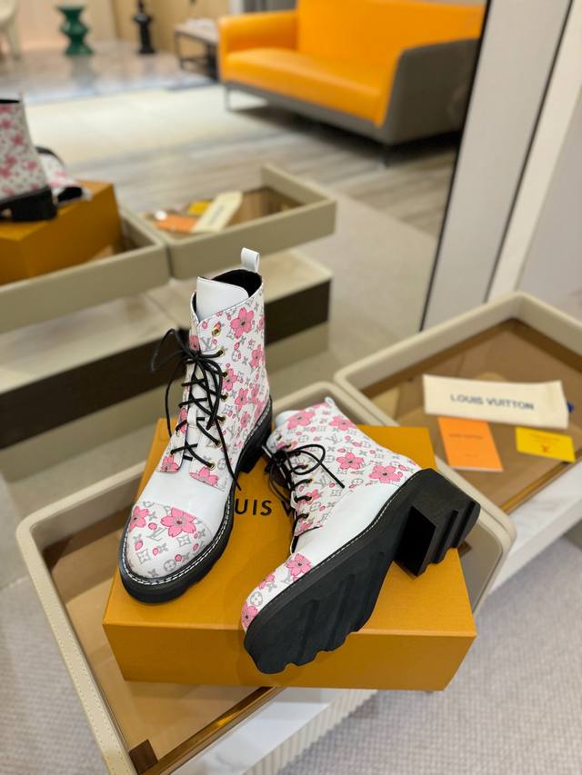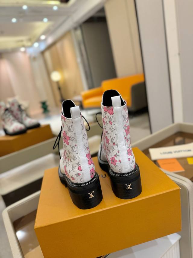 代购级 Louis Vuitton 25Ss 秋冬新款简约圆头小牛皮高跟短靴 原版套楦,完美的线条,简约大气上脚显气质粗跟舒适百搭...