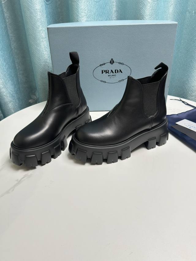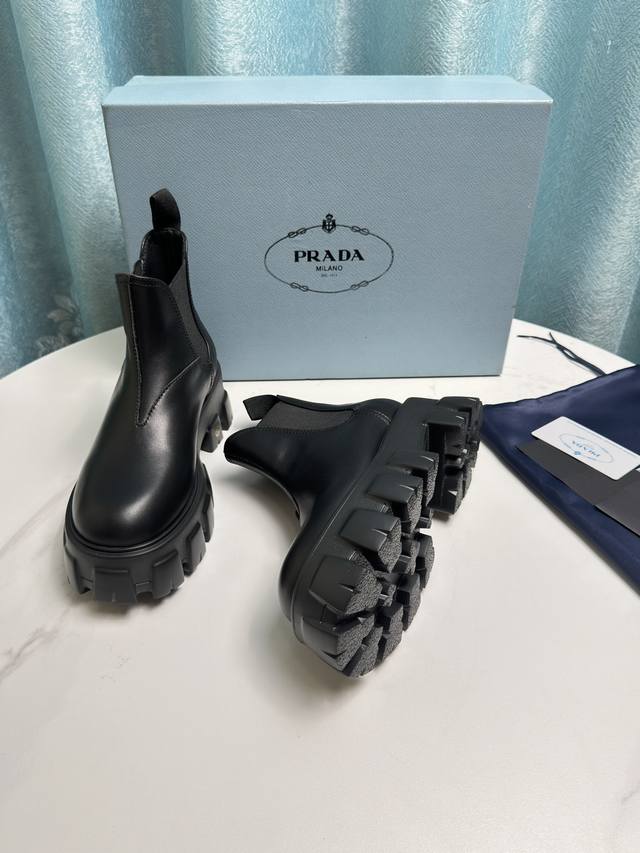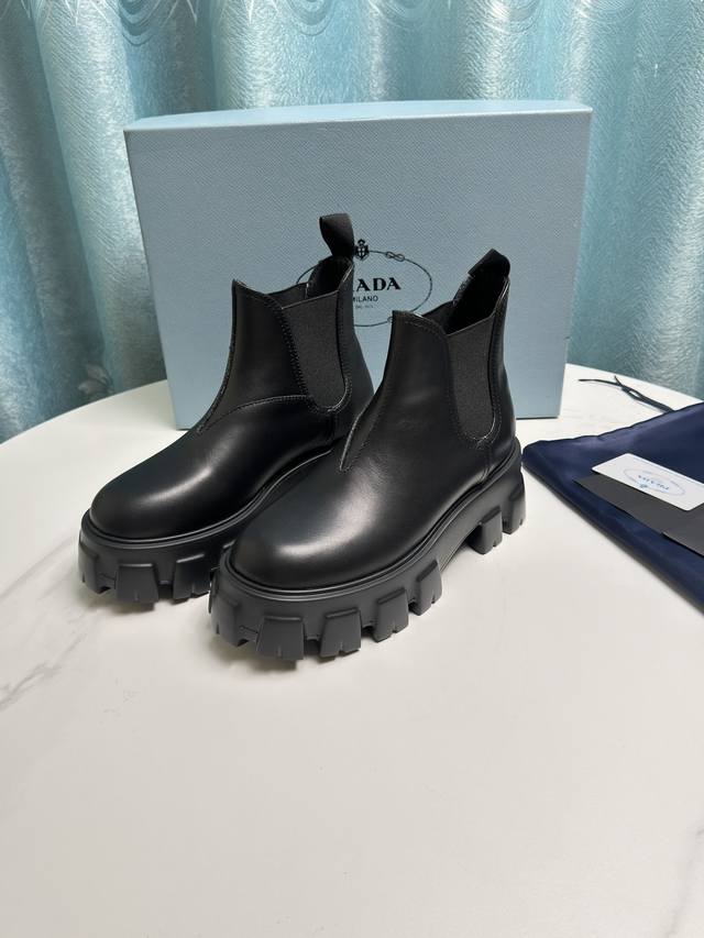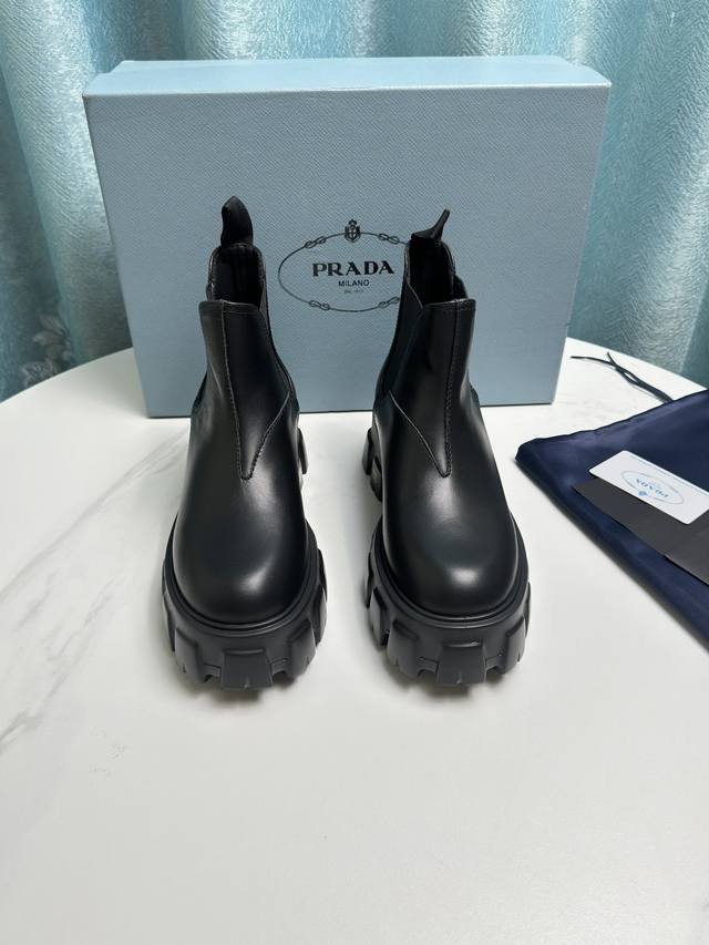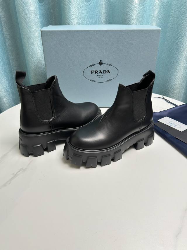 出厂价P 普拉达短靴,男女同款 面料:进口牛皮 内里:进口小牛里 大底:抽真空吸模大底 码数:35-45码