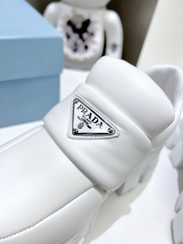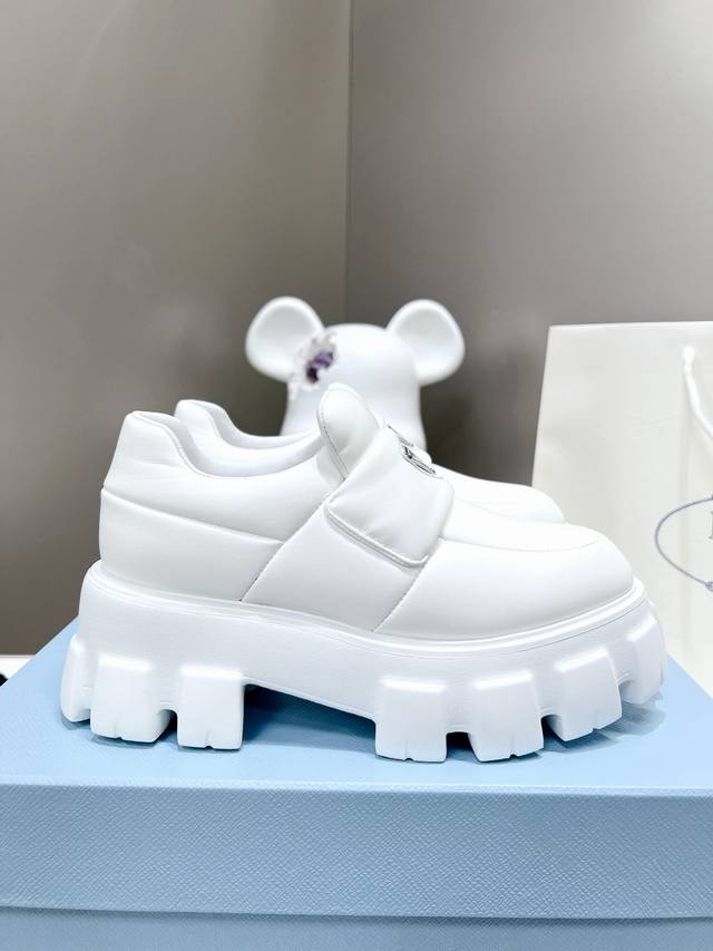 出厂价P ,最高版本 普拉达新款黑色超软头层小牛皮厚底休闲小皮鞋,刘雯众多网红上脚,Prad这款松糕厚底鞋今年非常爆,穿上 增高 休闲两不失误,清爽的表现足以表
