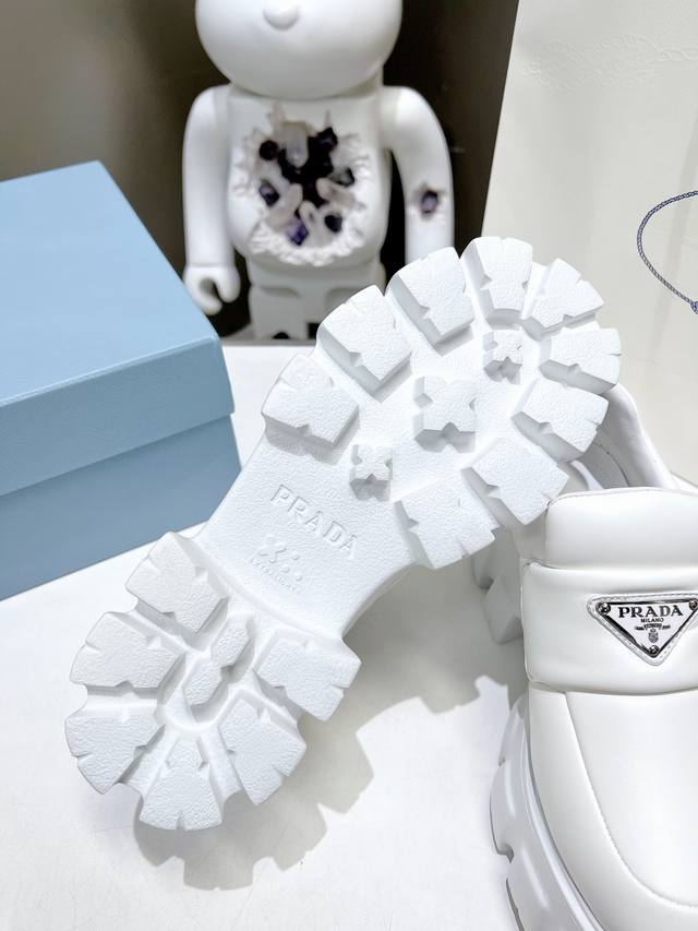 / 出厂价P ,最高版本 普拉达新款黑色超软头层小牛皮厚底休闲小皮鞋,刘雯众多网红上脚,Prad这款松糕厚底鞋今年非常爆,穿上 增高 休闲两不失误,清爽的表现足以表