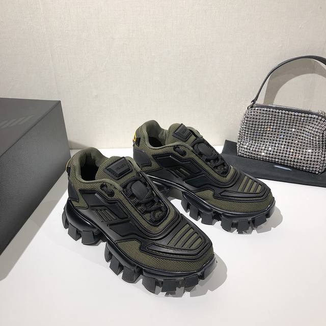 普拉达Prada顶级版运动鞋 鞋面进口飞织面料拼接漆皮, 羊皮内里+牛皮踮脚, 耐磨防滑轻便大底, 男女同款: 码数:35-47码,...