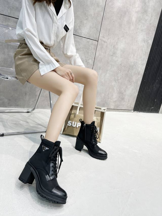 出厂价P ,顶级版!代购级!Prada普拉达秋冬走秀新品 潮爆啦今年Prada的设计简直不要太好看 !设计感十足 高端大气的外观 上脚相当惊艳 厚底大大提升了实穿性 最新系列比之前的更加好穿、高级时尚感爆棚!原版质感实在不要太好!高级开边珠牛皮只有最完美的工艺才能驾驭! 鞋面采用进口开边珠牛皮 质感无敌! 垫脚也是用进口羊面皮 用料实在狠!内里也是进口丝绸羊皮里原版一致 舒适透气 原版开模大底 回弹力原版一致 完美楦型 ,认准高端品质 面料:进口开边珠牛皮+进口尼龙高光丝布 内里:黑色水染羊皮里 不掉色