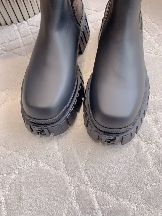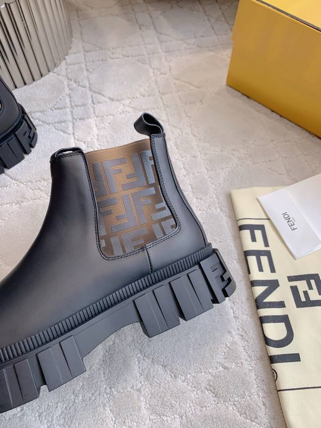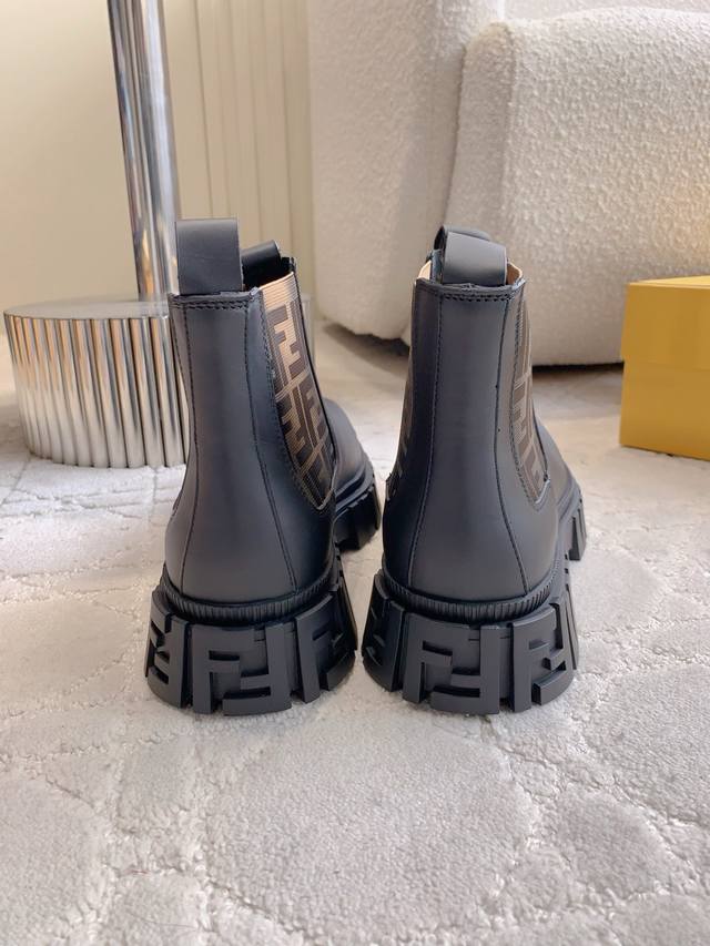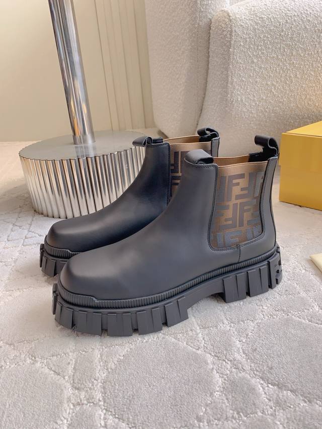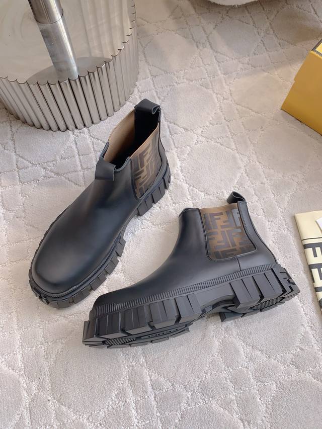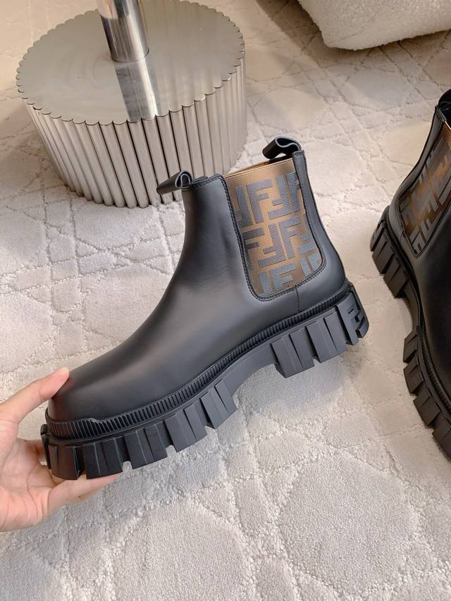 出厂价P 顶级版本 Fend* 新款男士厚底切尔西短靴 原版购入1:1复刻 细节对版Zp 随意进出专柜 尺码39 44 38 45 46定做