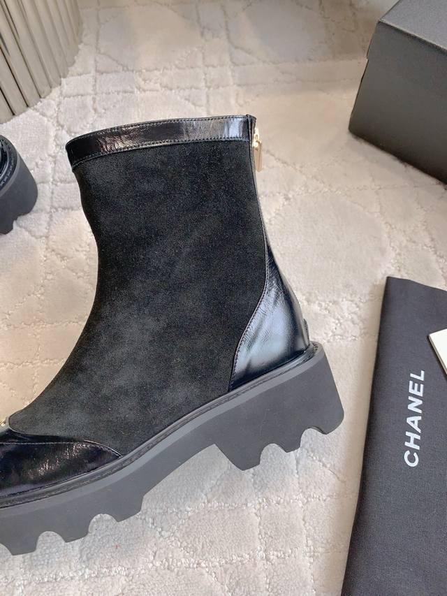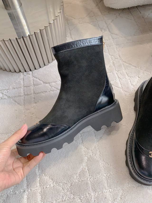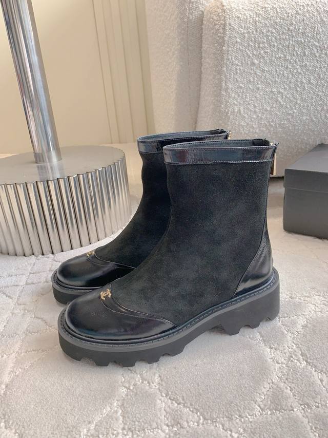 出厂价P Chane*新款厚底短靴 经典简约百搭款 鞋面原版牛皮 内里垫脚羊皮 意大利真皮大底 尺码35-39 40 41定做