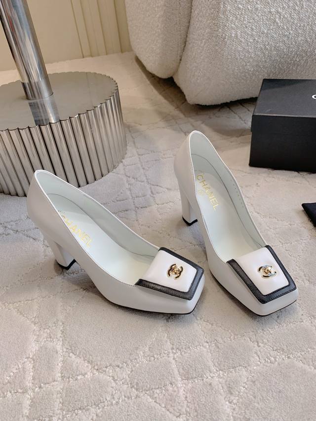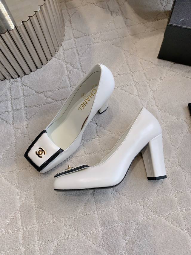 / 出厂价P Chane*新款方头高跟鞋 香家高级感这块总让人大写的服气 看起来简单的款式 但上脚就莫名很高级 绝对的少女感 舒适好穿 鞋面小羊皮 内里垫脚羊皮 意