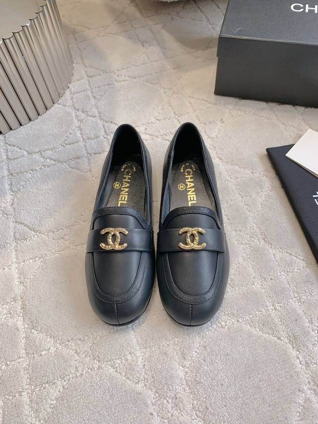 / 出厂价P Chane*经典款圆头乐福鞋 萌萌哒好可爱 搭配双C开模Logo精致的高级感 学院风百搭又减龄 各种穿搭都能驾驭 鞋面小羊皮 内里垫脚羊皮 意大利真皮