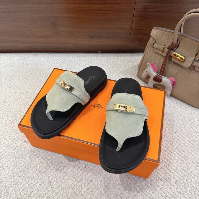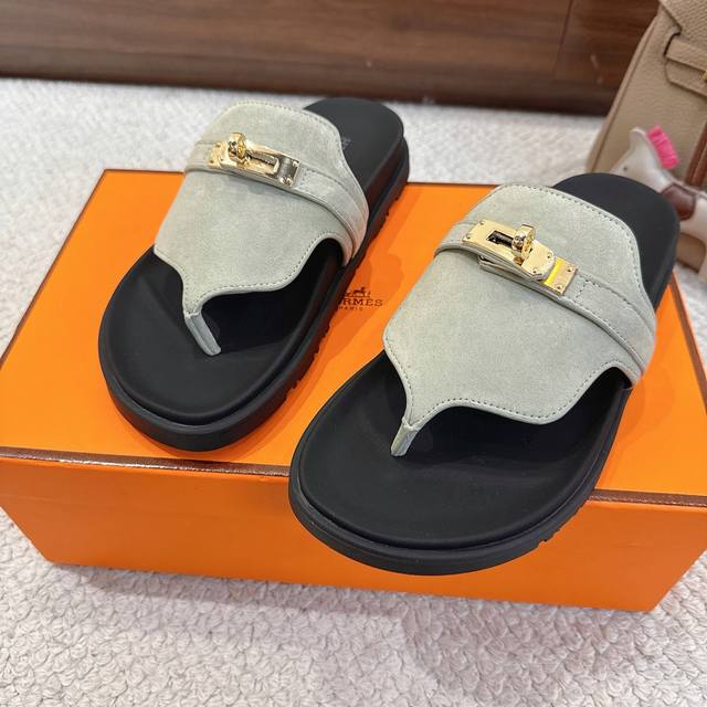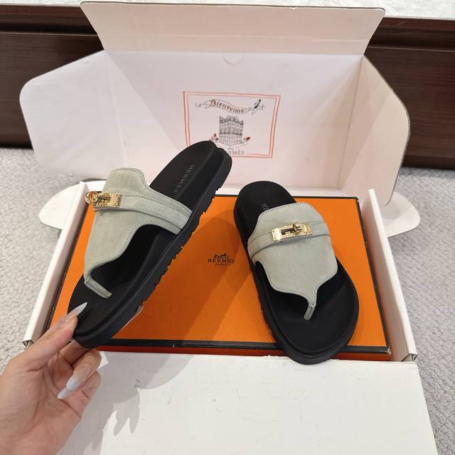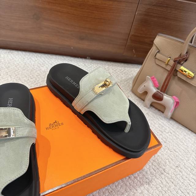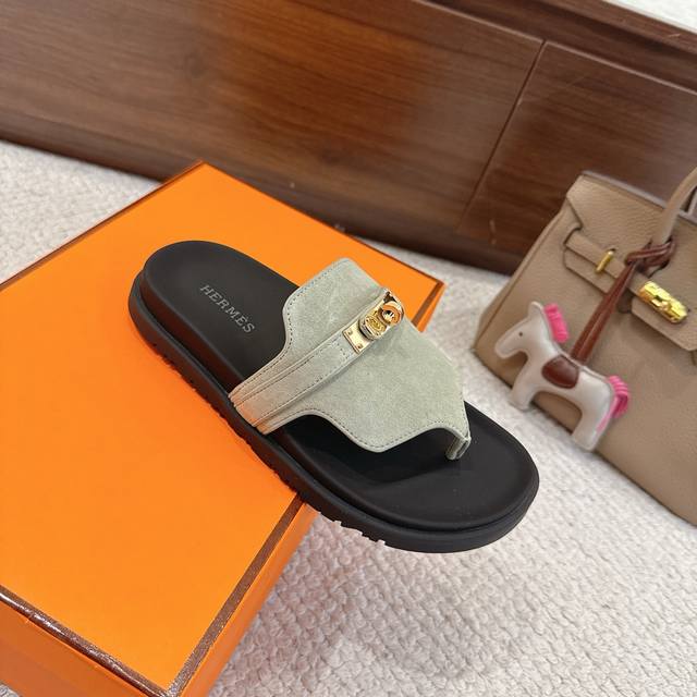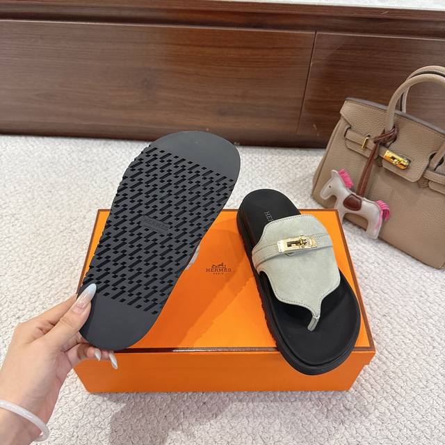 / 出厂价P Hermes 爱马仕 经典二舅夹趾拖 Empire 凉鞋系列 时尚又百搭 超级舒服 每个细节都做到极致 原版Swift小牛皮 麂皮 原版1:1独家私模