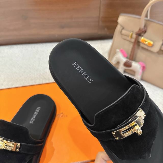 出厂价P Hermes 爱马仕 经典Key 穆勒鞋半拖系列 时尚又百搭 超级舒服 每个细节都做到极致 原版牛反绒鞋面...