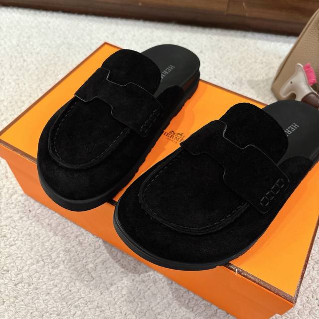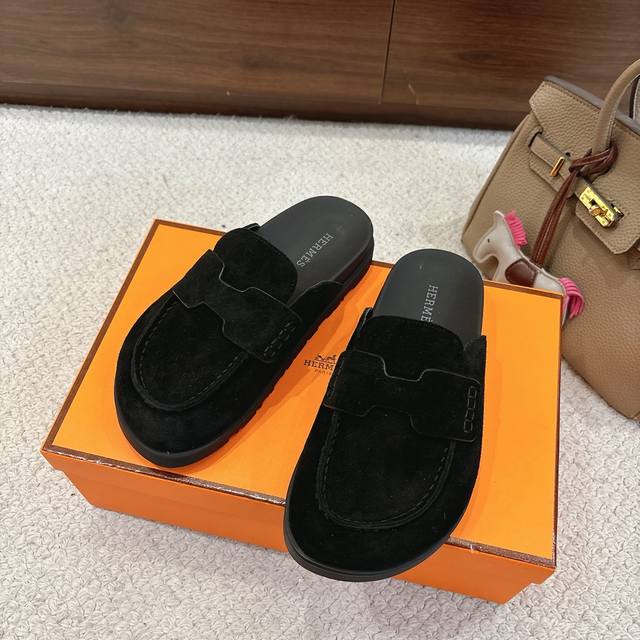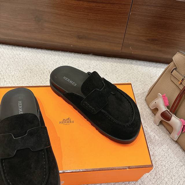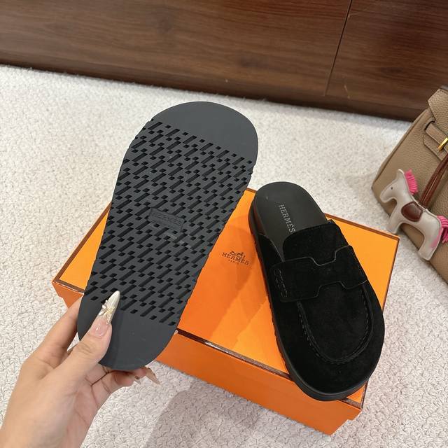 出厂价P Hermes 爱马仕 经典Go 穆勒鞋半拖系列 时尚又百搭 超级舒服 每个细节都做到极致 原版水晶羊皮 牛反绒 原版1:1独家私模他Tpr水台 原版私