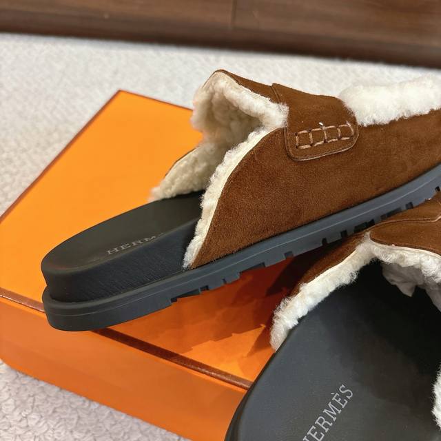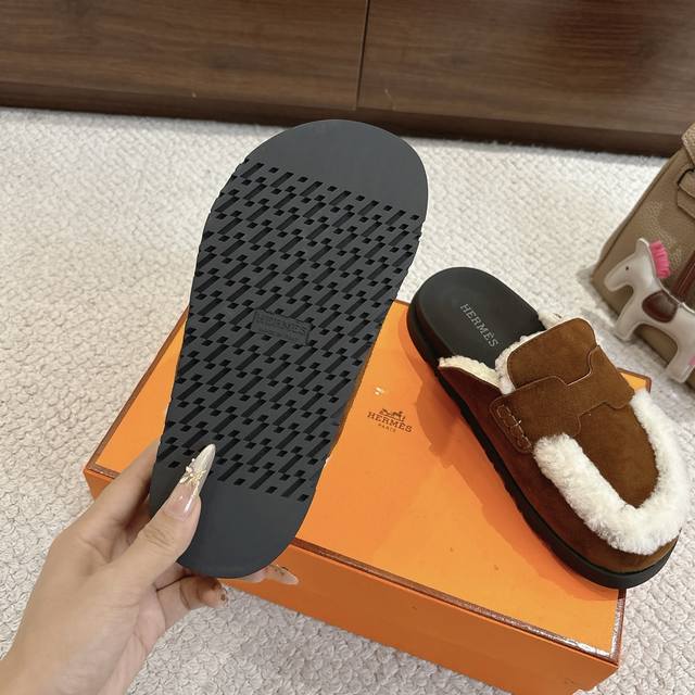 出厂价P Hermes 爱马仕 经典Go 穆勒鞋半拖系列 时尚又百搭 超级舒服 每个细节都做到极致 原版水晶羊皮 牛反绒 原版1:1独家私模他Tpr水台 原版私