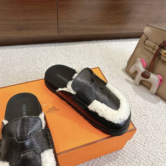 出厂价P Hermes 爱马仕 经典Go 穆勒鞋半拖系列 时尚又百搭 超级舒服 每个细节都做到极致 原版水晶羊皮 牛反绒 原版1:1独家私模他Tpr水台 原版私