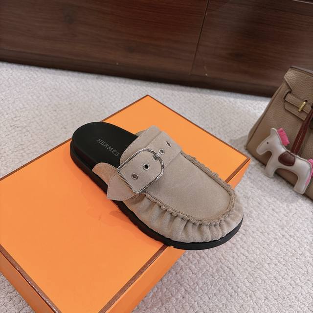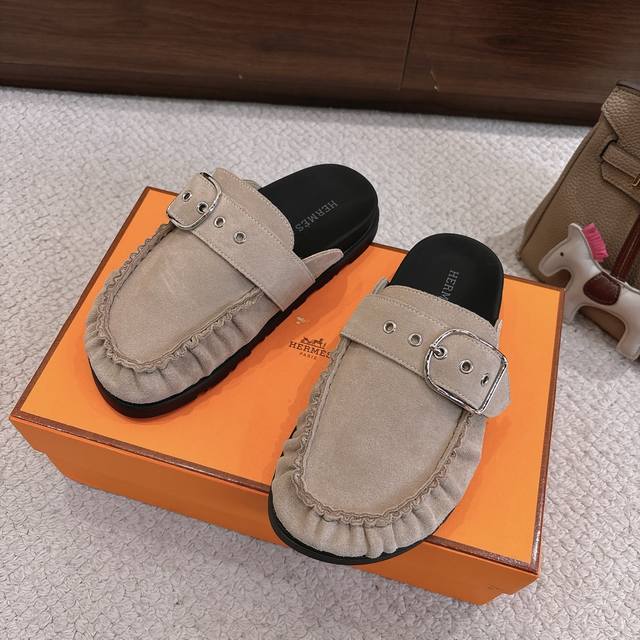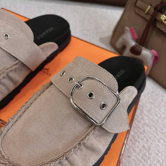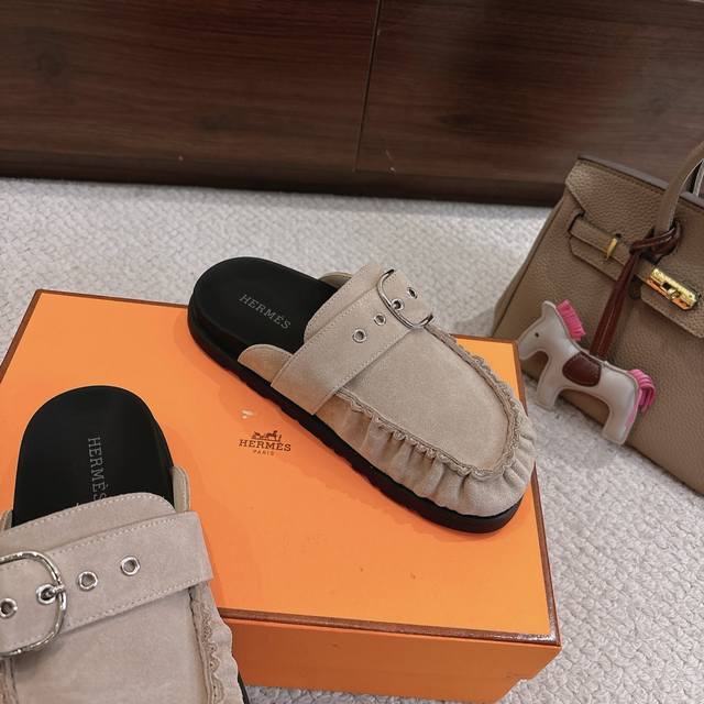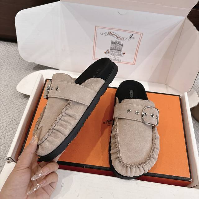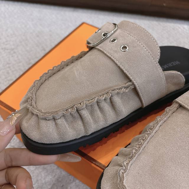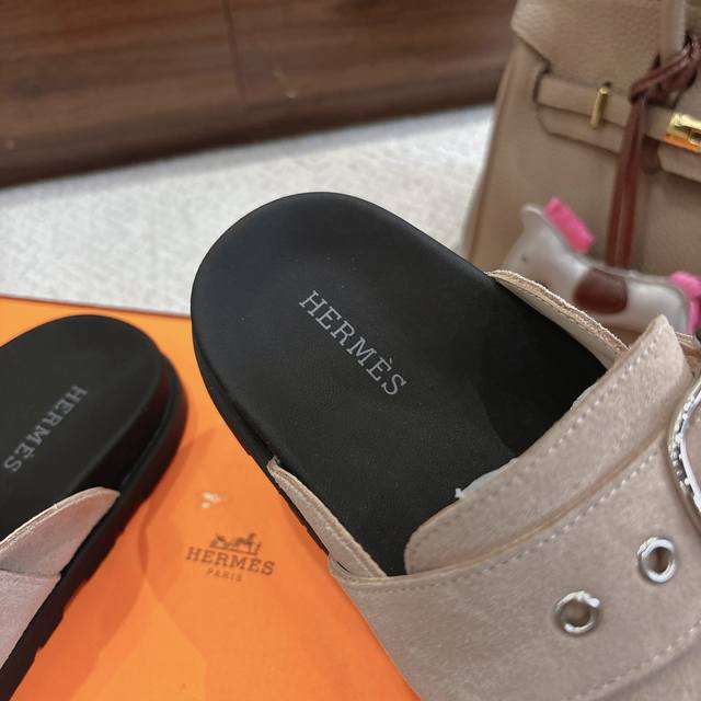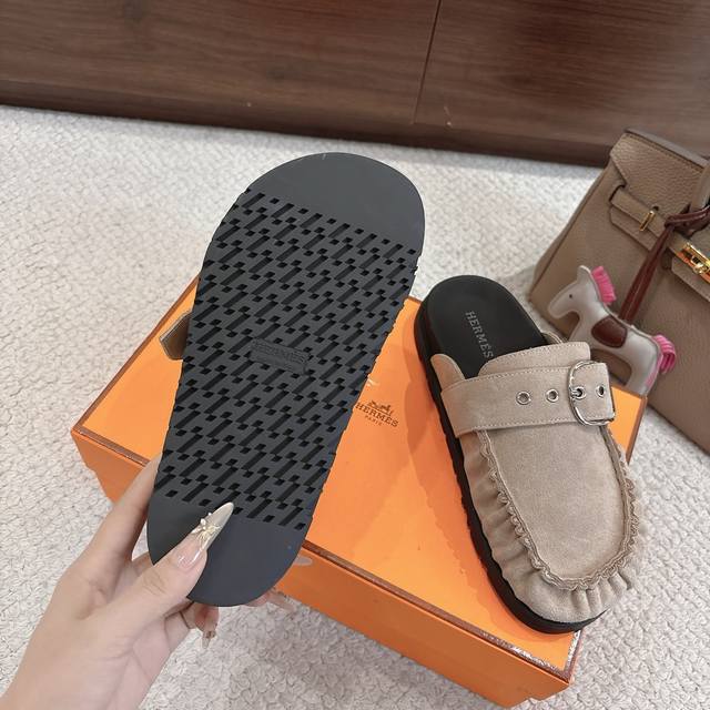 出厂价P Hermes 爱马仕 经典Key 穆勒鞋半拖系列 时尚又百搭 超级舒服 每个细节都做到极致 原版牛反绒鞋面 原版1:1独家私模他Tpr水台 原版私模橡