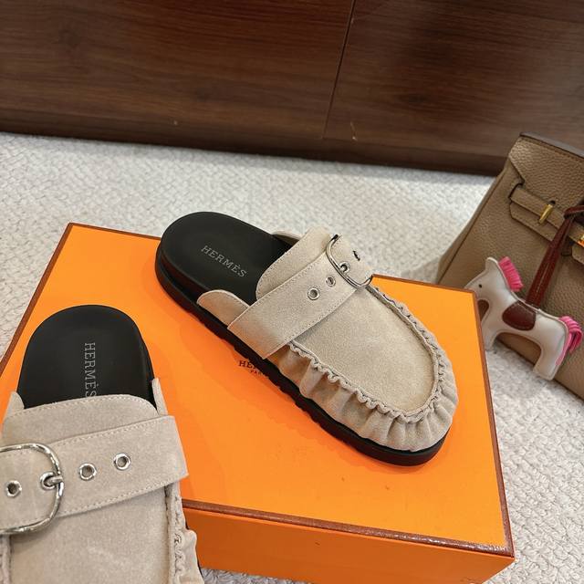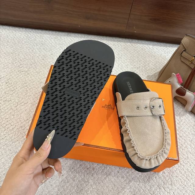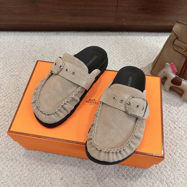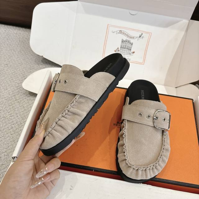 / 出厂价P Hermes 爱马仕 经典Key 穆勒鞋半拖系列 时尚又百搭 超级舒服 每个细节都做到极致 原版牛反绒鞋面 原版1:1独家私模他Tpr水台 原版私模橡
