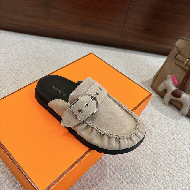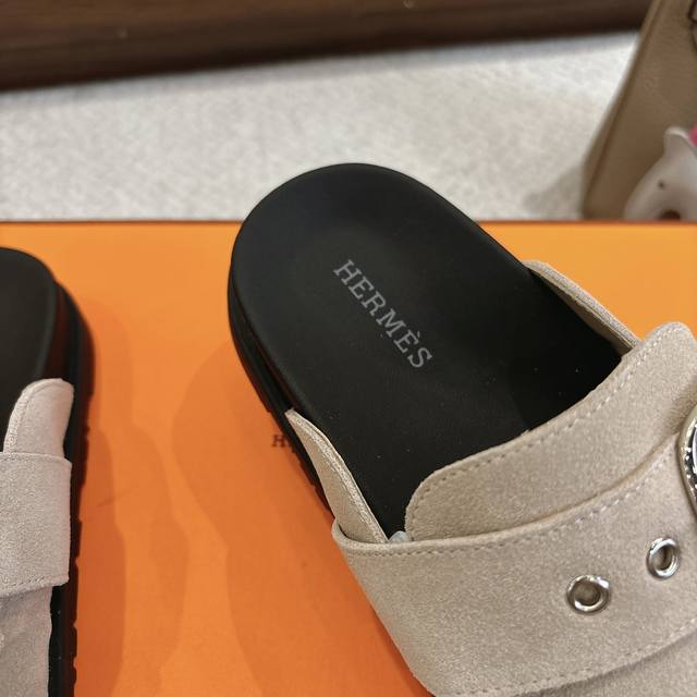 出厂价P Hermes 爱马仕 经典Key 穆勒鞋半拖系列 时尚又百搭 超级舒服 每个细节都做到极致 原版牛反绒鞋面 原版1:1独家私模他Tpr水台 原版私模橡