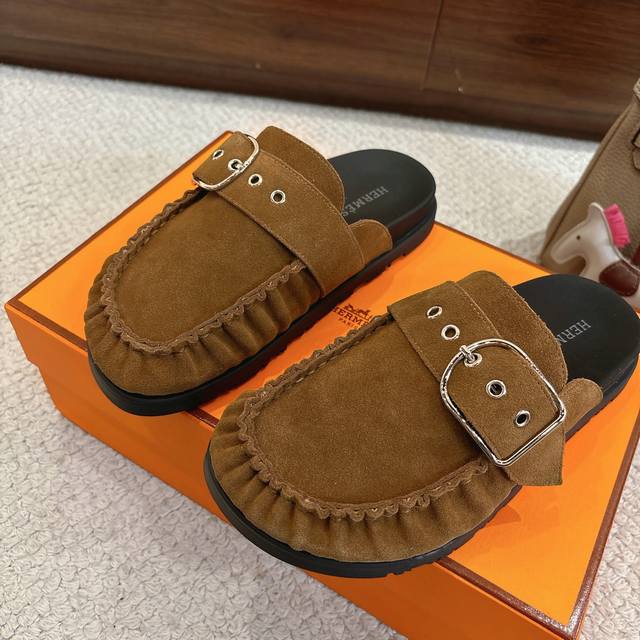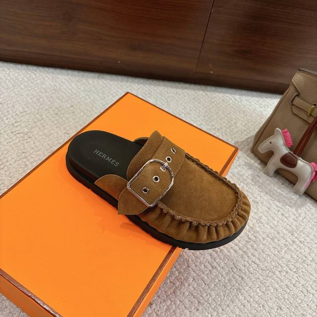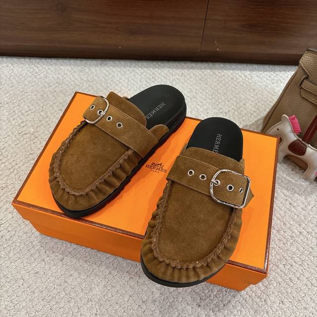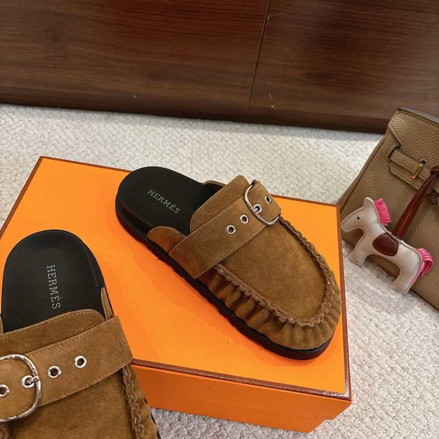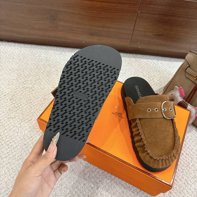 / 出厂价P Hermes 爱马仕 经典Key 穆勒鞋半拖系列 时尚又百搭 超级舒服 每个细节都做到极致 原版牛反绒鞋面 原版1:1独家私模他Tpr水台 原版私模橡