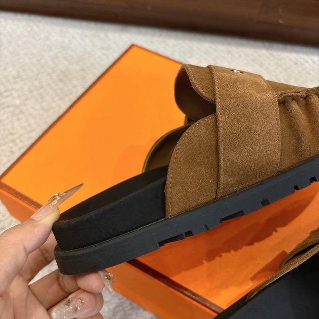 出厂价P Hermes 爱马仕 经典Key 穆勒鞋半拖系列 时尚又百搭 超级舒服 每个细节都做到极致 原版牛反绒鞋面 原版1:1独家私模他Tpr水台 原版私模橡
