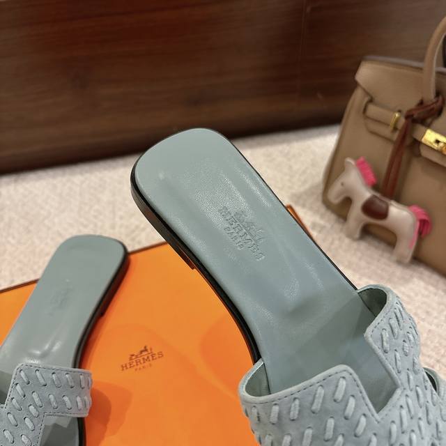 出厂价P Hermes 爱马仕H拖鞋Oran凉鞋系列 时尚又百搭 超级舒服 每个细节都做到极致 原版细腻麂皮面料 原版1:1独家私模鞋面 原版真皮沿条大底 包装