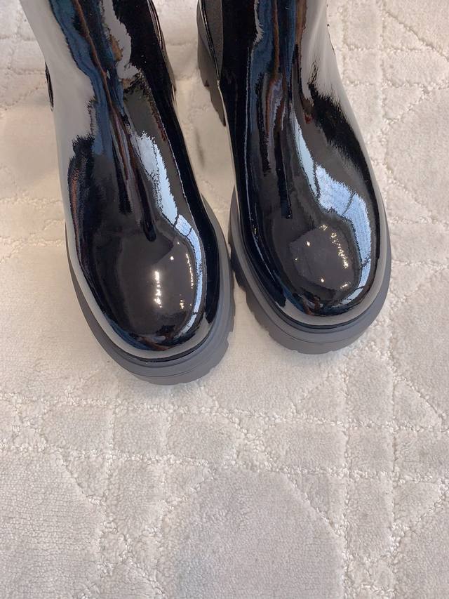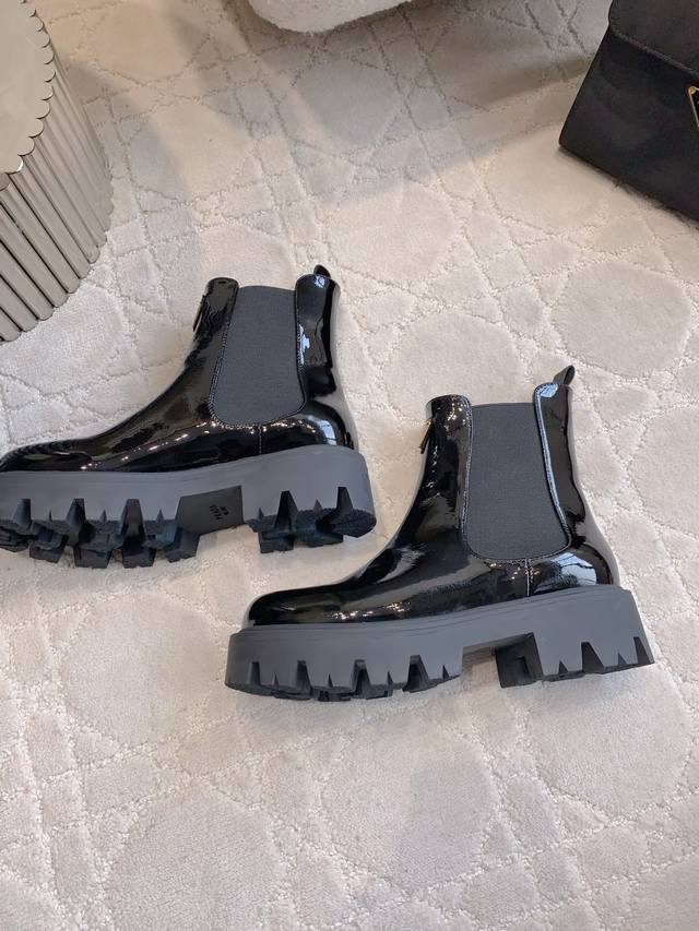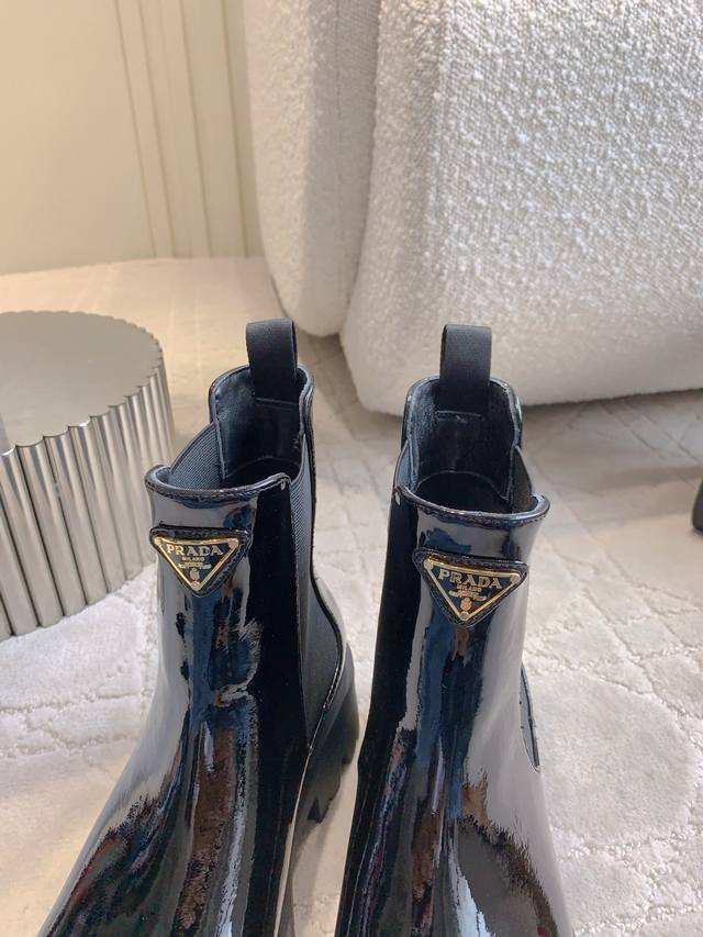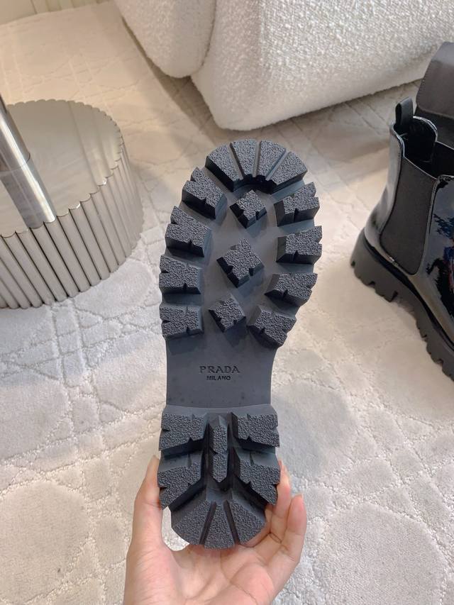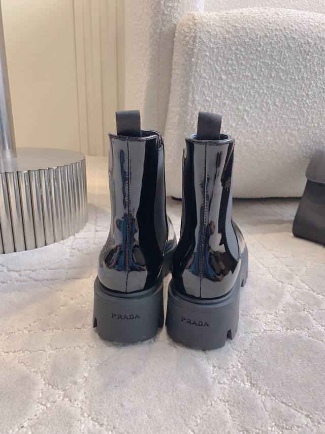 出厂价P Prad*新款三角标厚底短靴 经典三角标装饰 鞋型流畅帅气 超好穿 上脚简直酷炸了 万年百搭靴 鞋面小牛皮 原版开模三角标 内里垫脚牛皮 原版开模大底