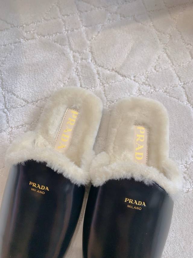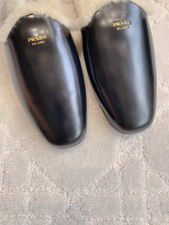出厂价P Prad*新款羊毛里平底穆勒半拖鞋 简约时尚 尽显极简高级感 脚感超级舒适 超级保暖 鞋面小牛皮 羊京 内里垫脚进口羊毛 原版开模大底 尺码35-39 40定做