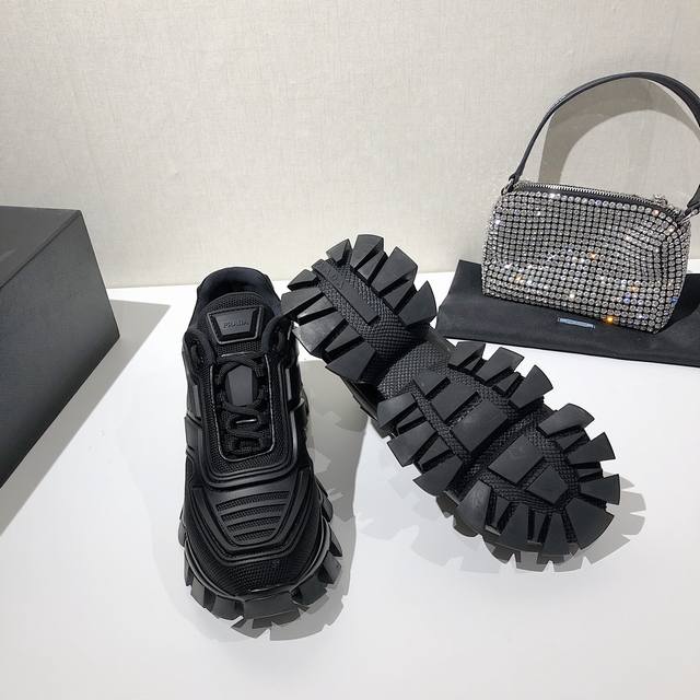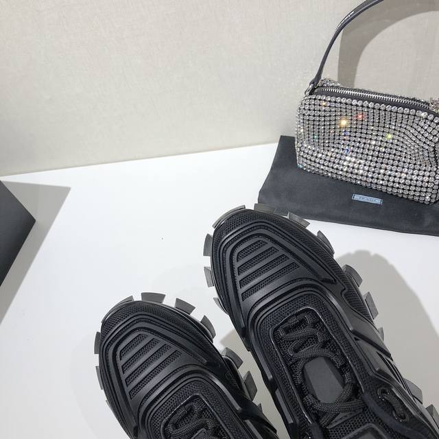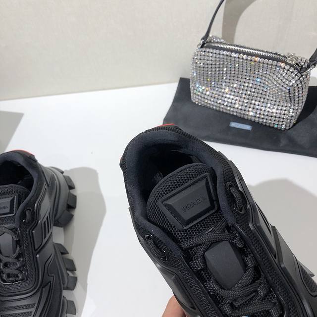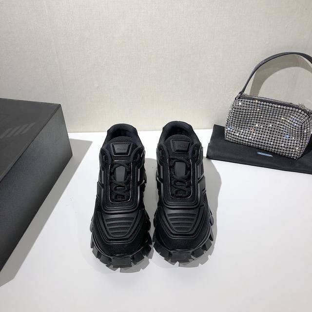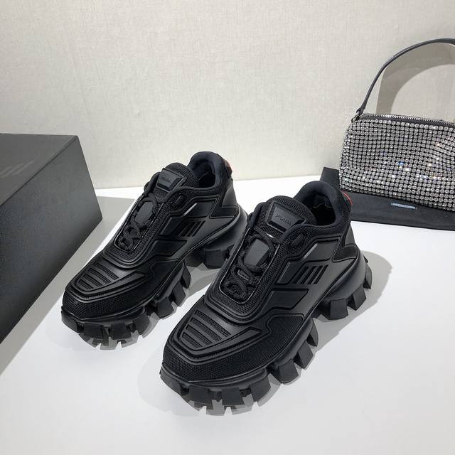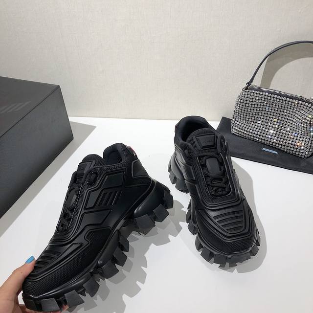 / 出厂价Pp: 普拉达:最新老爹鞋系列: 面料:进口太空棉布+Kpu注塑 内里:进口丝绸羊皮里 +布 大底:原版一比一开模橡胶发泡超轻大底 包装:一比一 跟高5C
