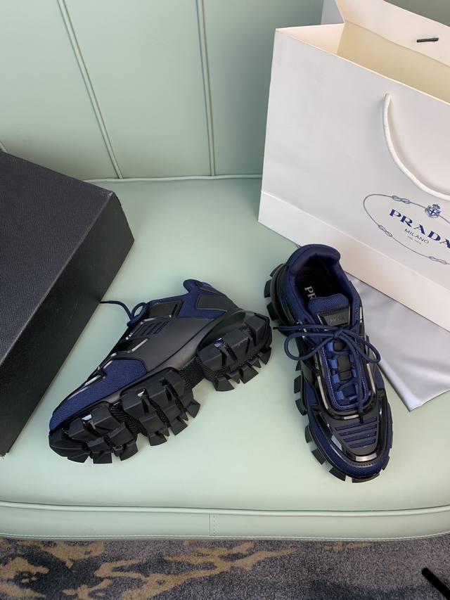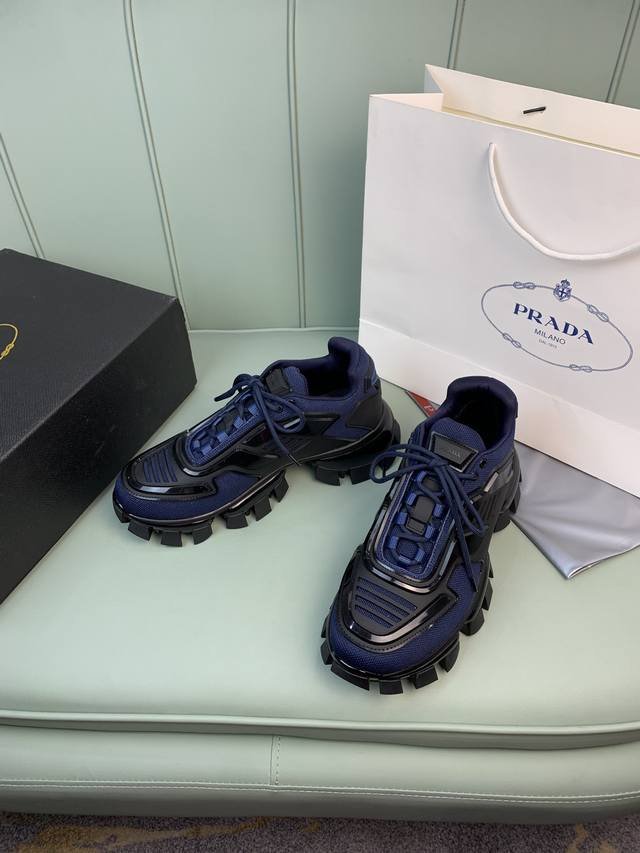 / 出厂价Pp: 普拉达:最新老爹鞋系列: 面料:进口太空棉布+Kpu注塑 内里:进口丝绸羊皮里 +布 大底:原版一比一开模橡胶发泡超轻大底 包装:一比一 跟高5C