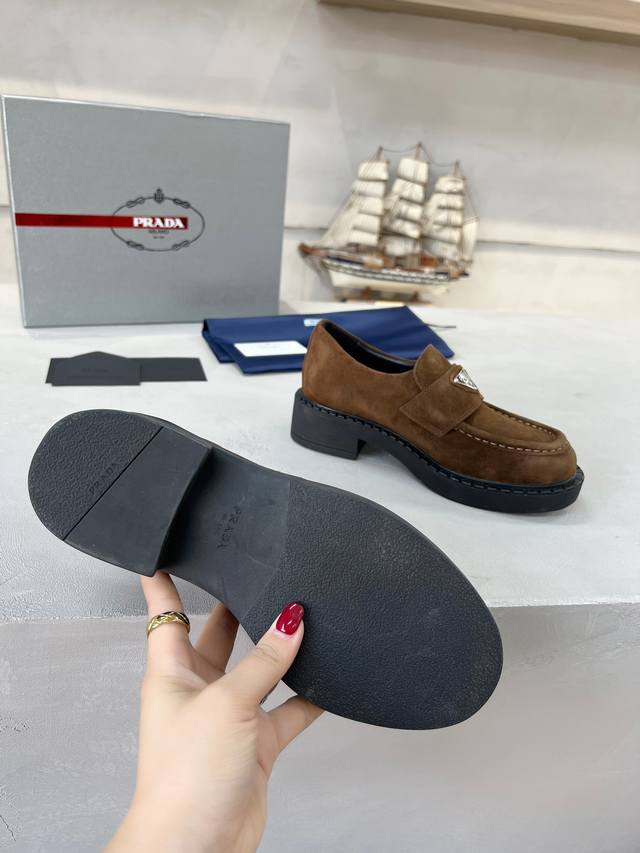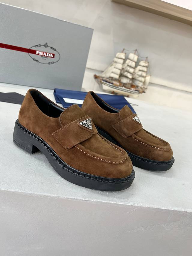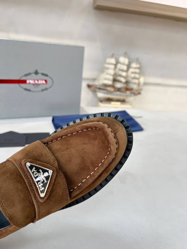 出厂价Pp: , 普拉达:男女款 面料:A级进口高丝光牛反绒 内里:柔软丝绸羊皮 垫脚:丝稠牛皮垫脚 码数:35-45码