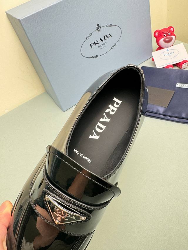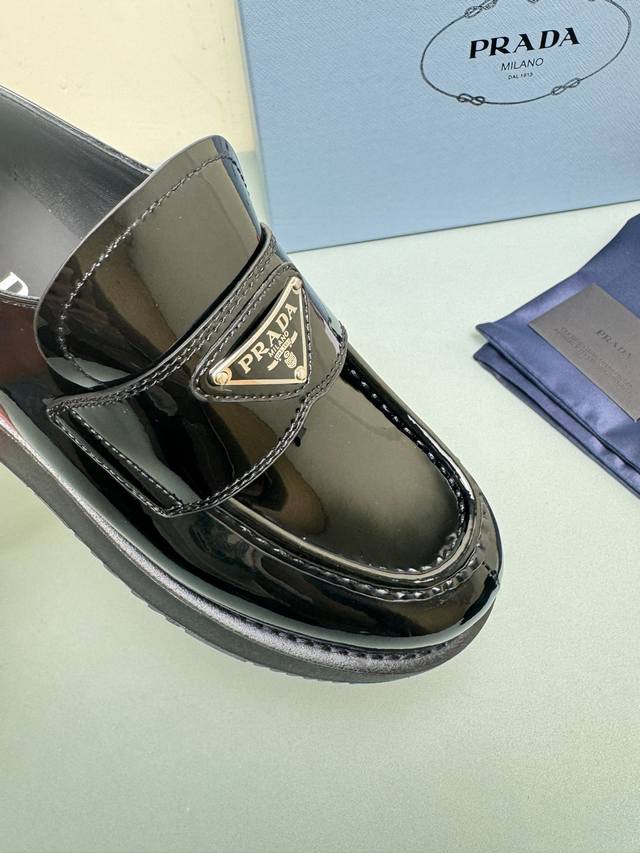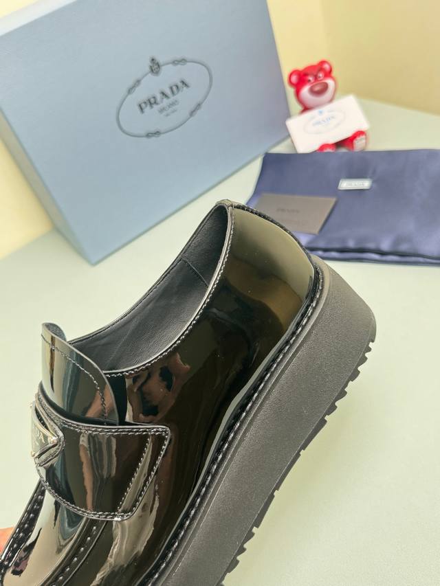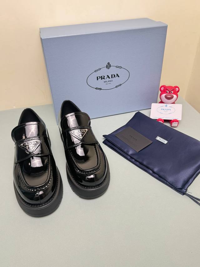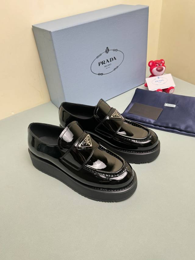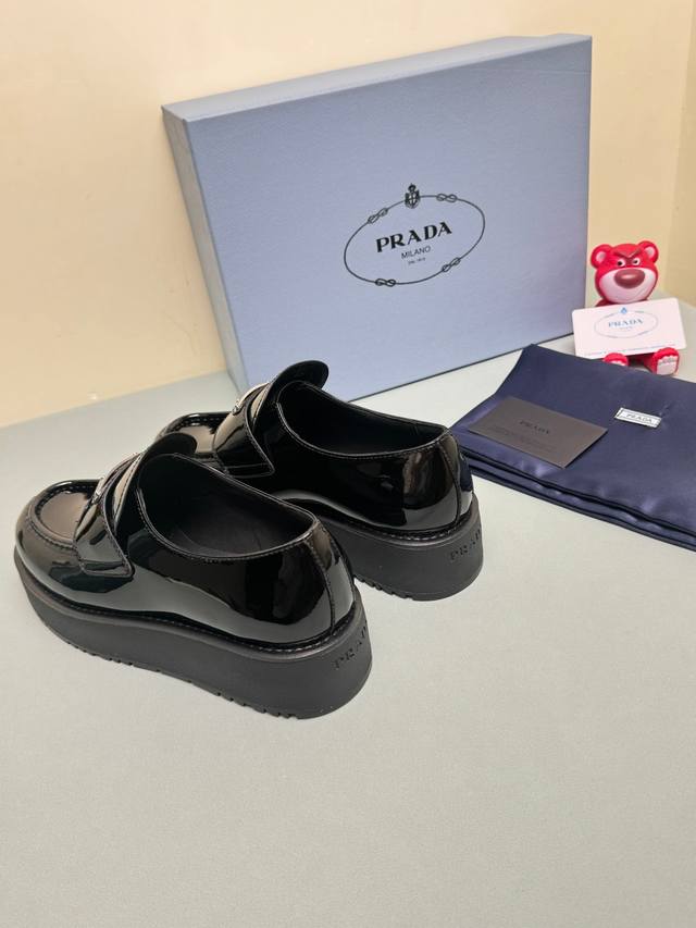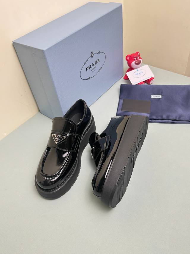 出厂价Pp: 普拉达 松糕厚底乐福鞋 鞋面:进口开边珠牛皮 牛漆皮 内里:羊皮+羊皮踮脚 大底:原版开模松糕大底 跟高:4Cm 码数:35-40 41定做