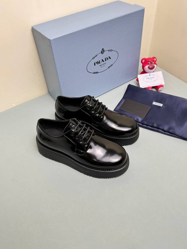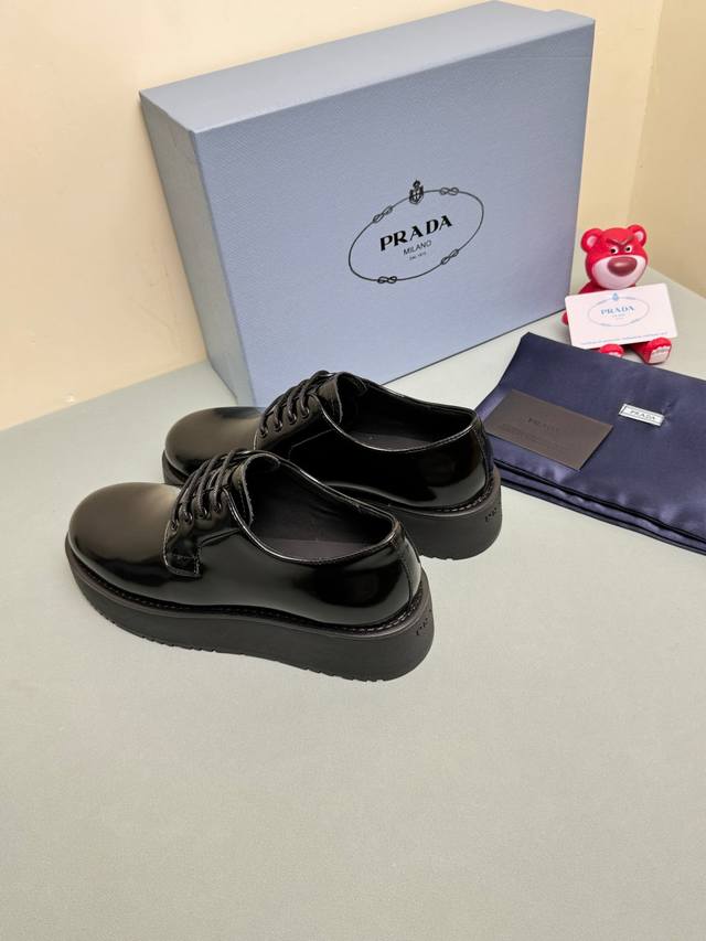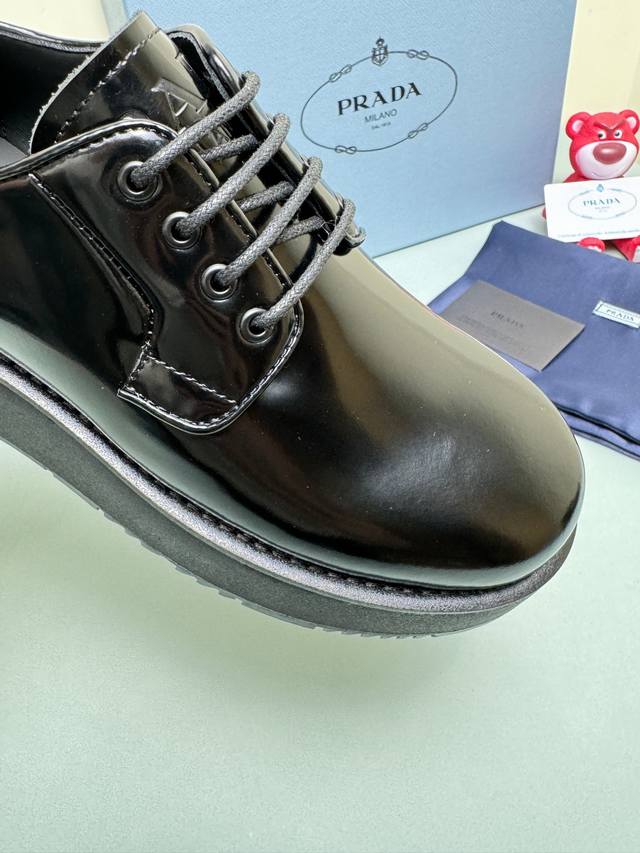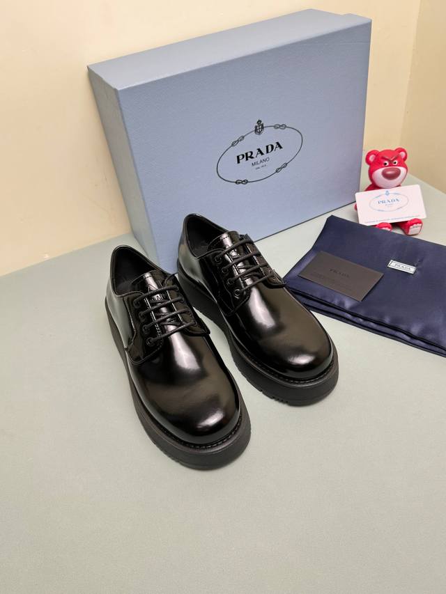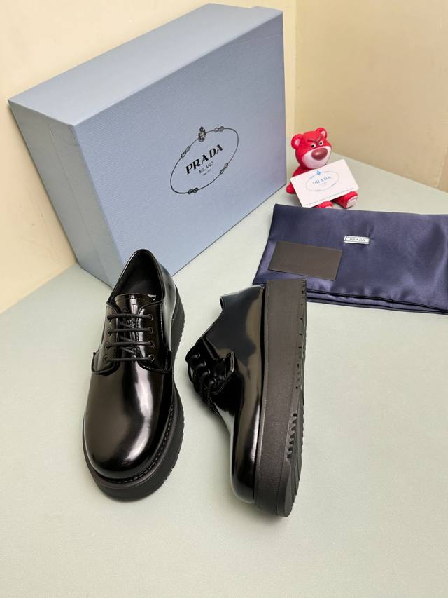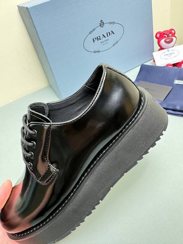 出厂价Pp: 普拉达 松糕厚底乐福鞋 鞋面:进口开边珠牛皮 牛漆皮 内里:羊皮+羊皮踮脚 大底:原版开模松糕大底 跟高:4Cm 码数:35-40 41定做