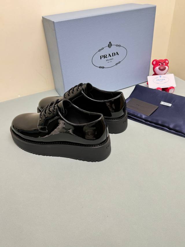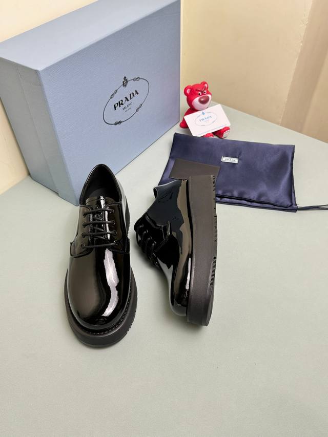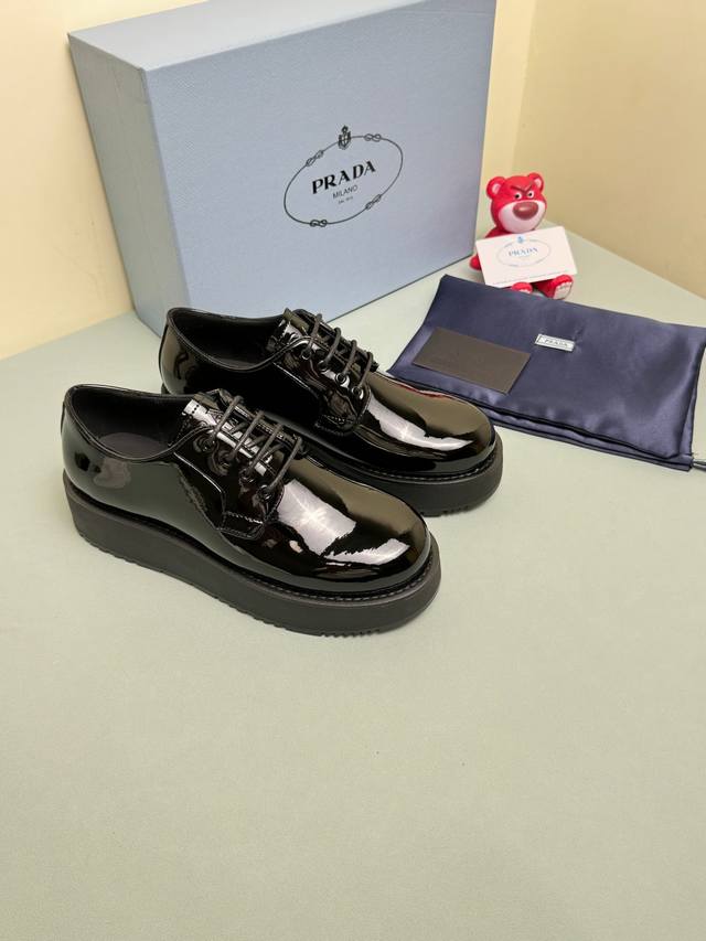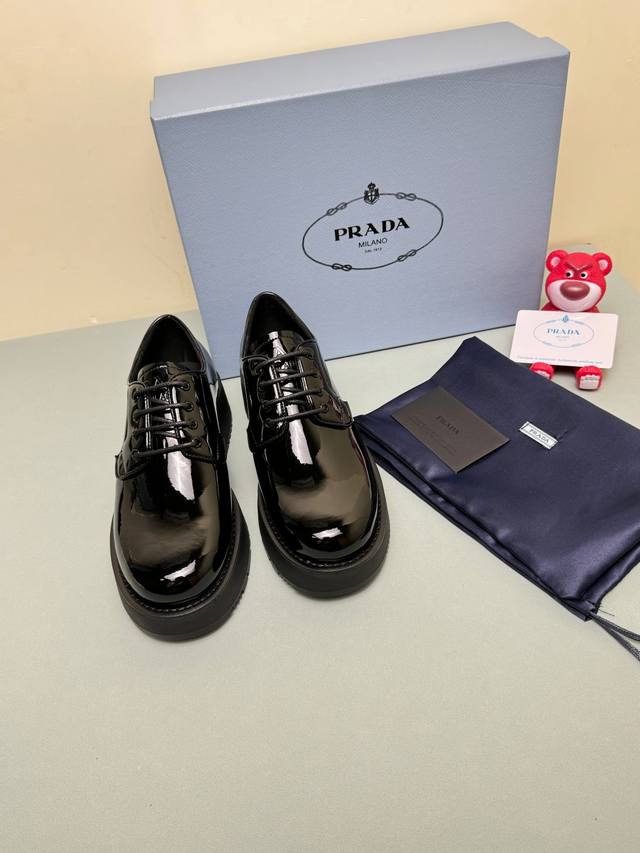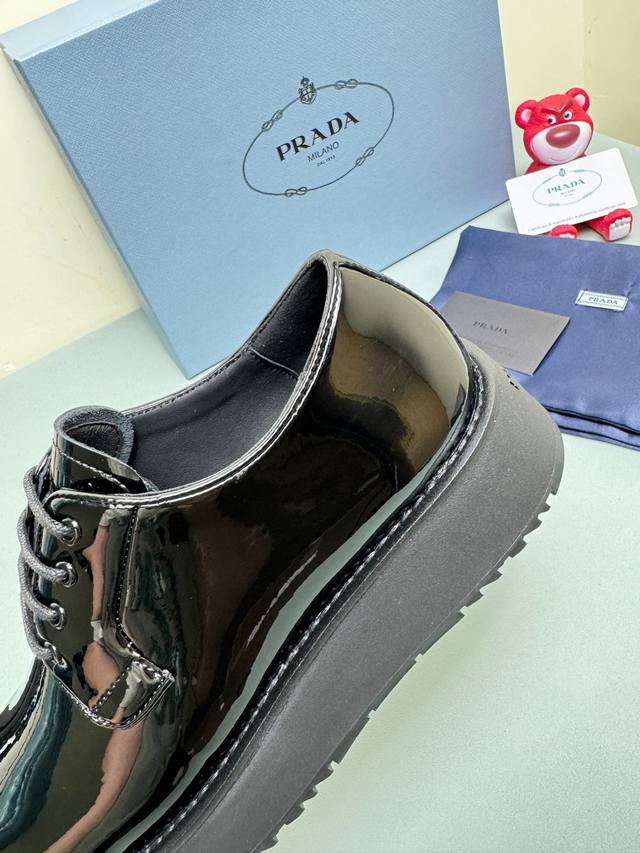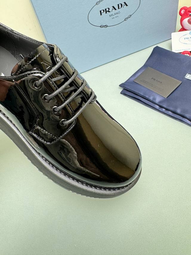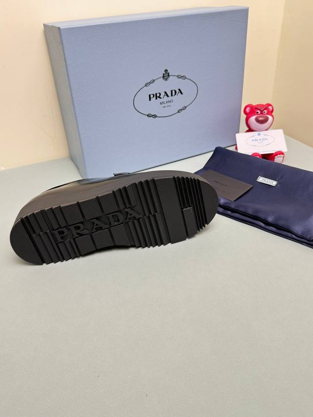 出厂价Pp: 普拉达 松糕厚底乐福鞋 鞋面:进口开边珠牛皮 牛漆皮 内里:羊皮+羊皮踮脚 大底:原版开模松糕大底 跟高:4Cm 码数:35-40 41定做