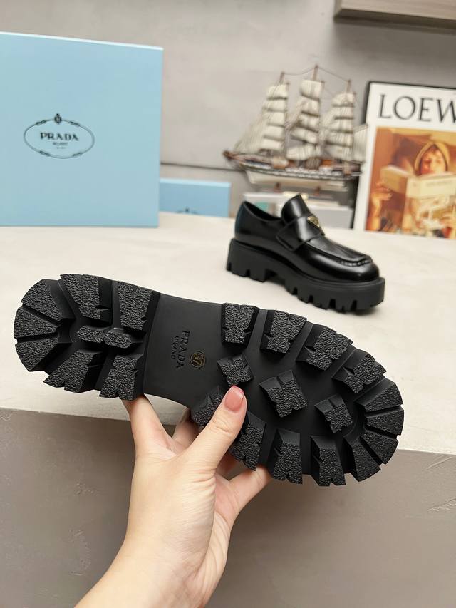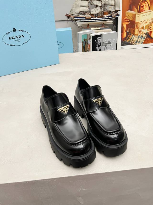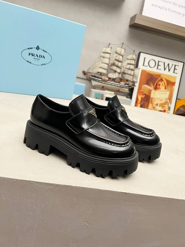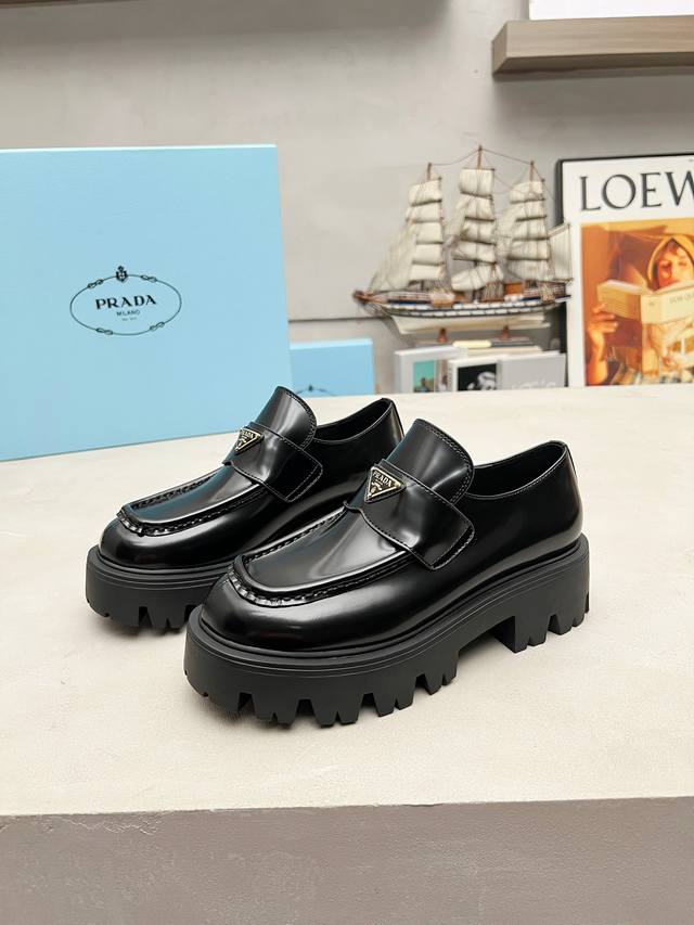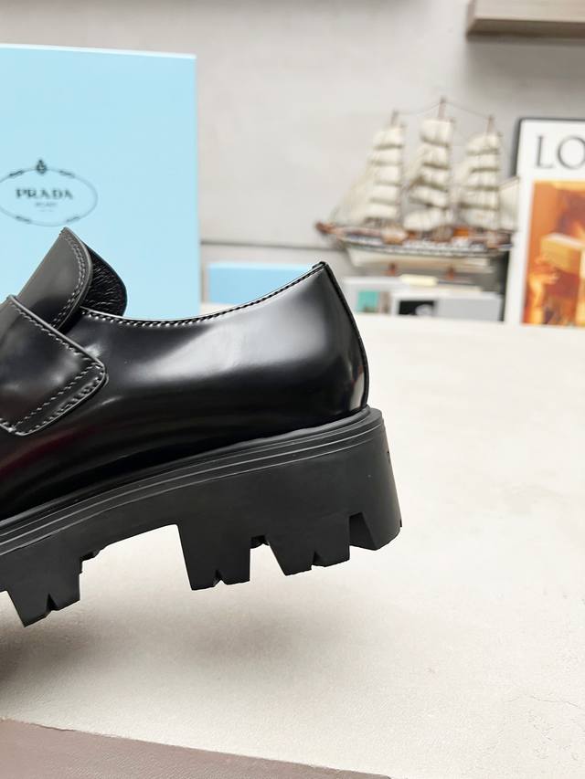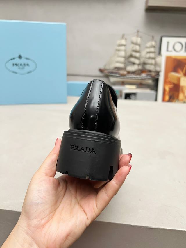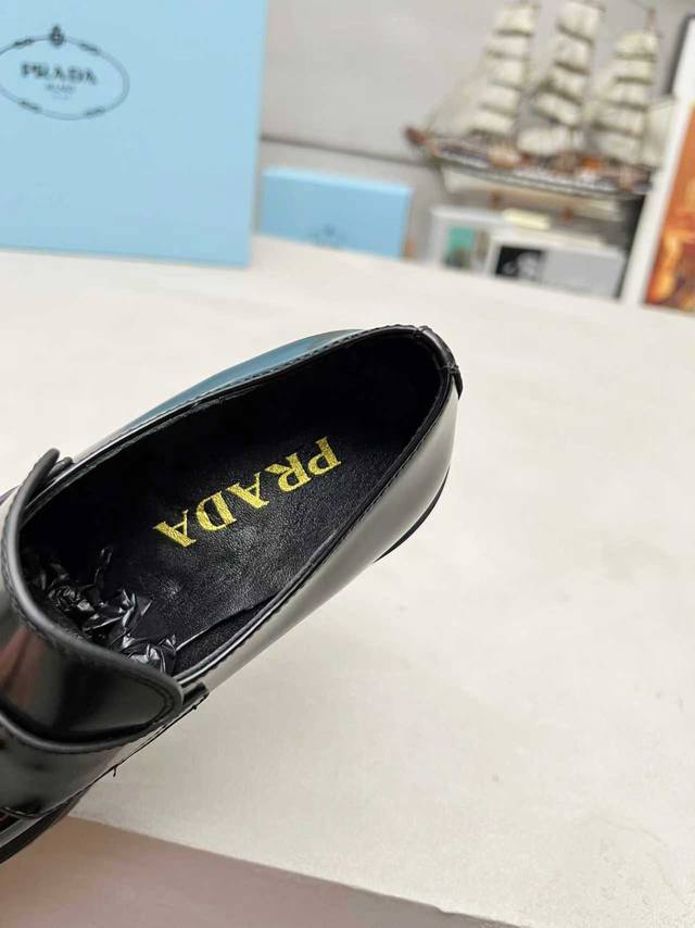 出厂价Pp: 普拉达: 面:进口开边珠、牛漆皮、高丝光牛反绒 里:进口小牛皮 垫:进口小牛皮 底:原版工艺大底 厚6Cm 码数:35-41 41定做