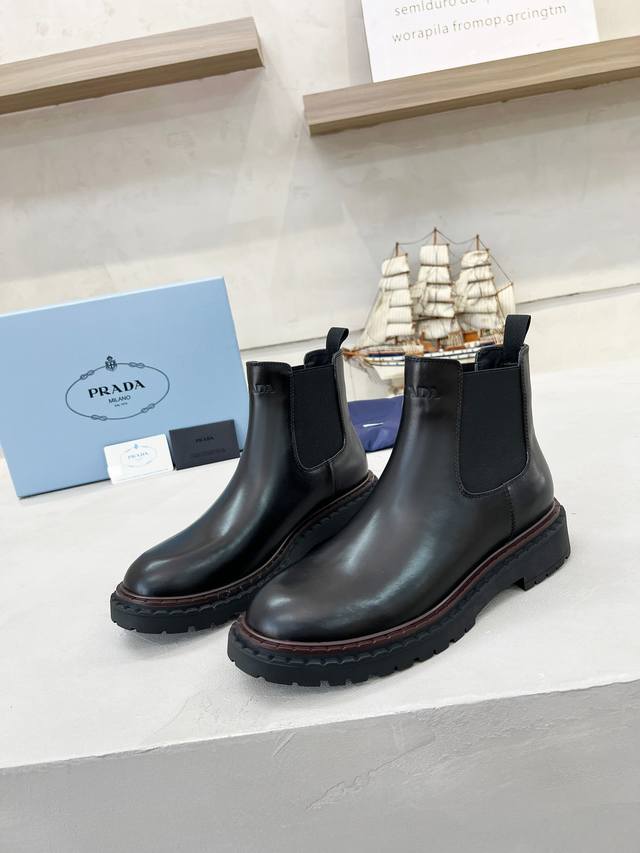 出厂价Pp: Prada普拉达 男女鞋专柜爆款, 官网同步,高品质出货 面料:原版小牛 内里:牛皮垫脚+牛皮内里, 大底:原厂Tpu大底 码数:男女同款 :35