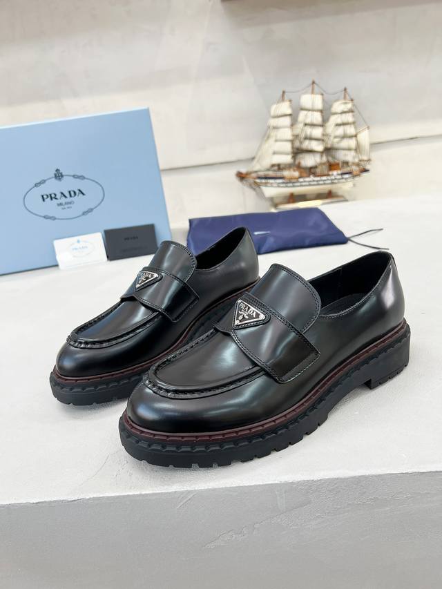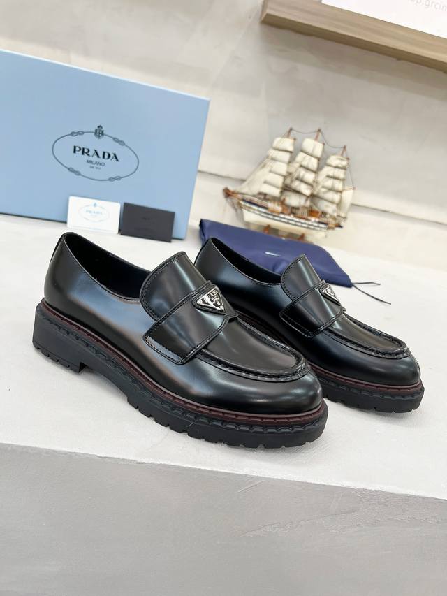 出厂价Pp: Prada普拉达 男女鞋专柜爆款, 官网同步,高品质出货 面料:原版小牛 内里:牛皮垫脚+牛皮内里, 大底:原厂Tpu大底 码数:男女同款:35~45码 男款+10